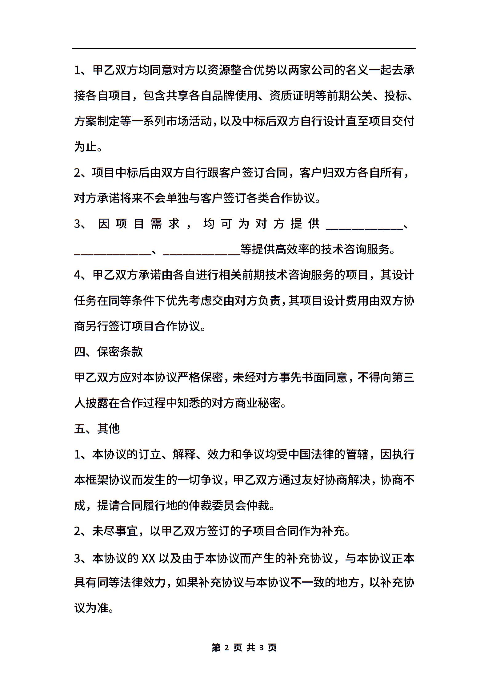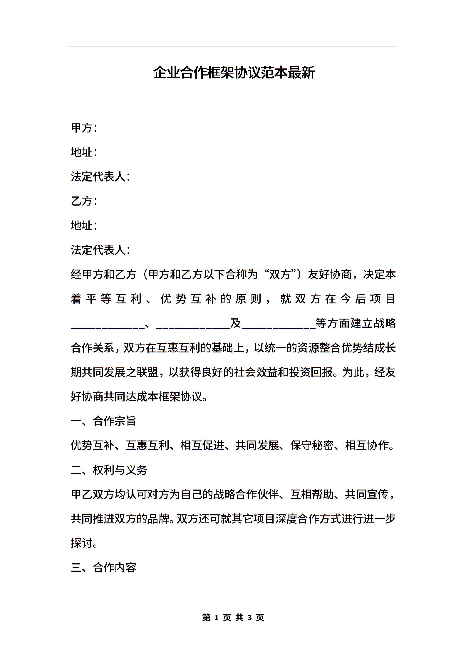 企业合作框架协议范本最新
