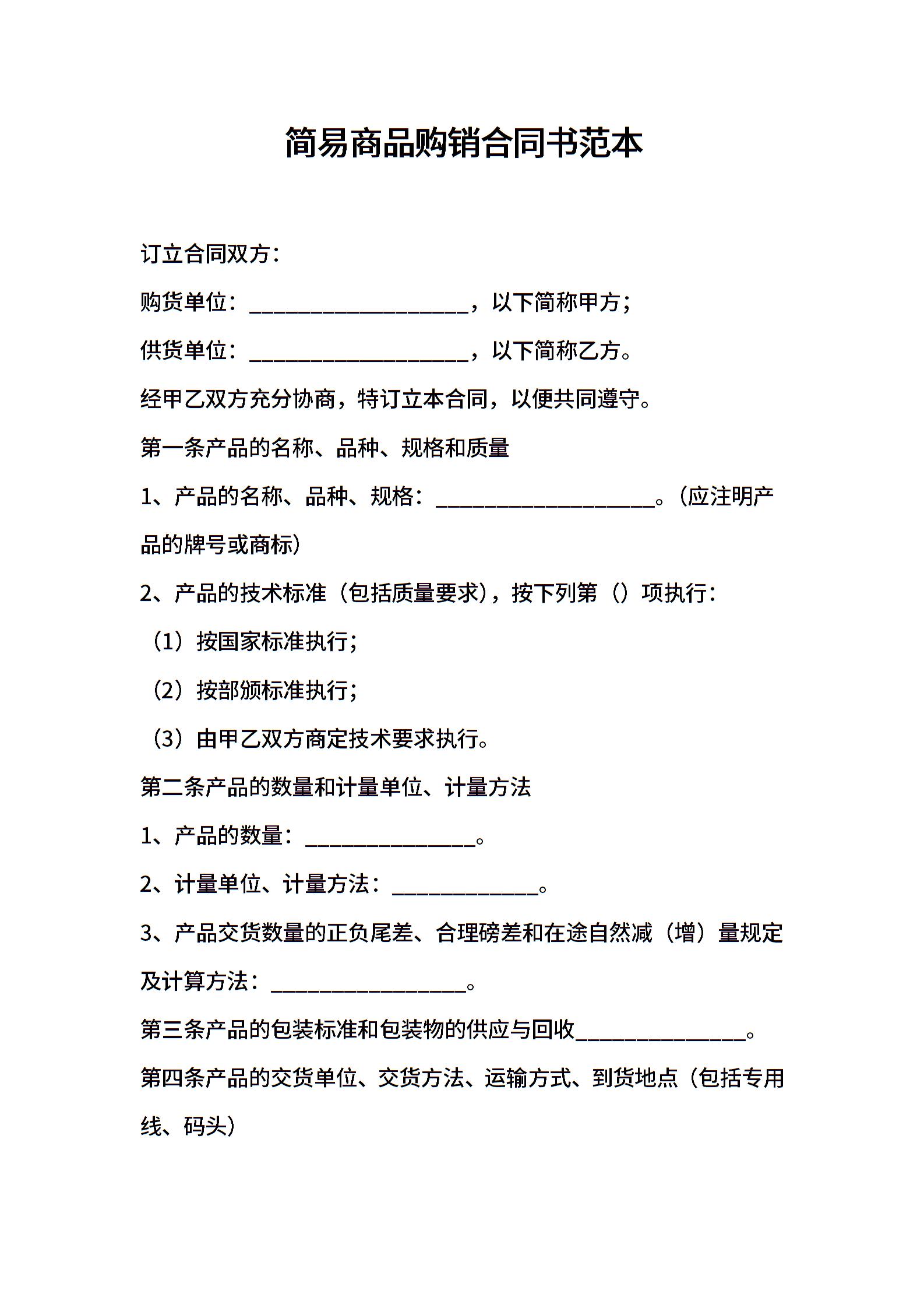 简易商品购销合同书范本