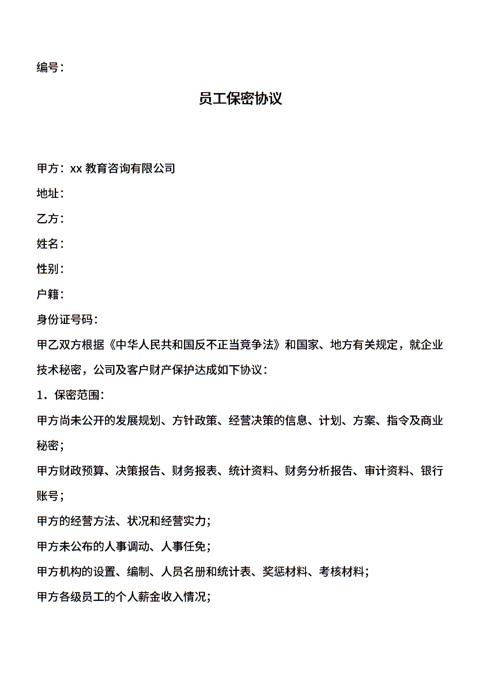 xx教育员工保密协议