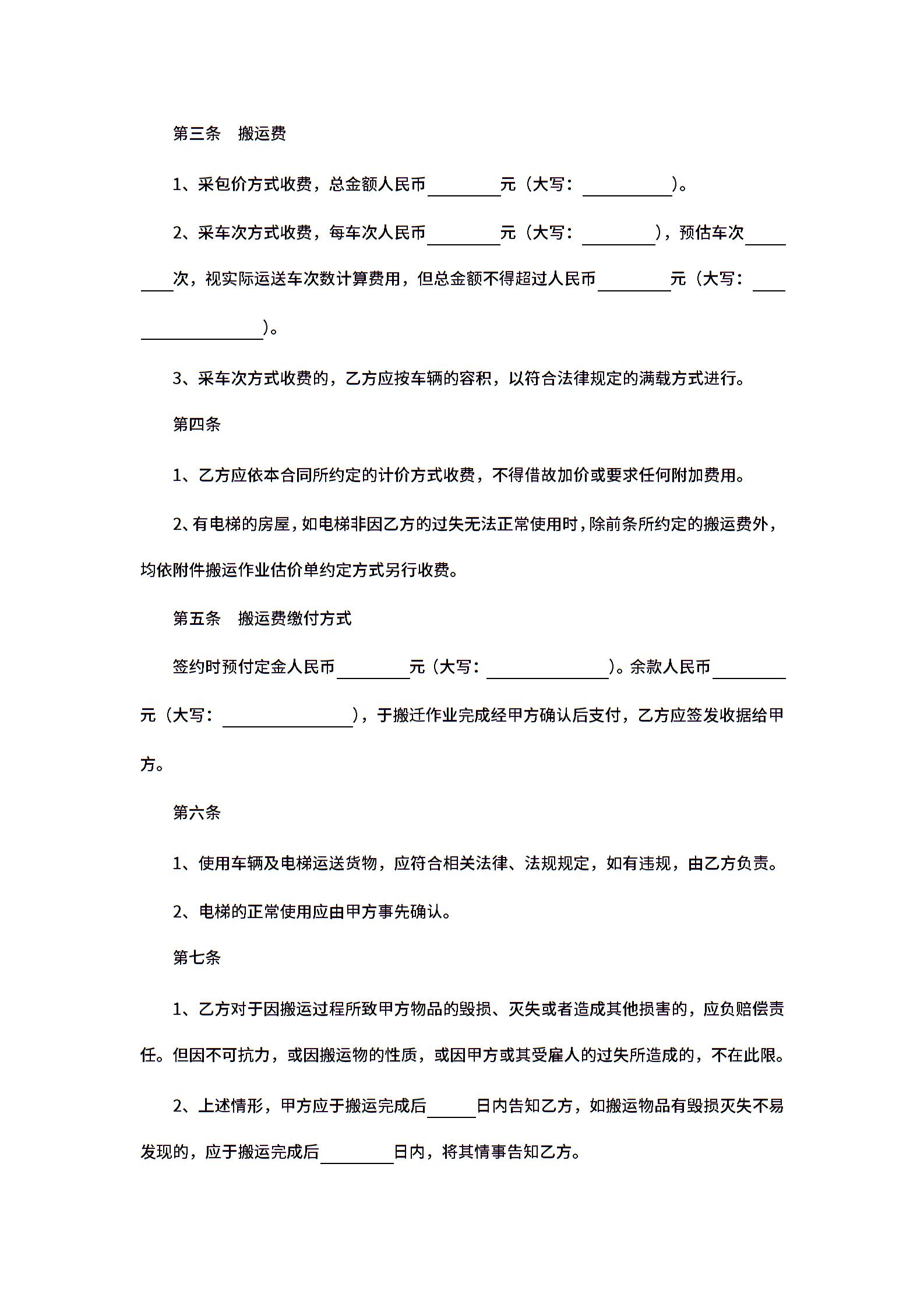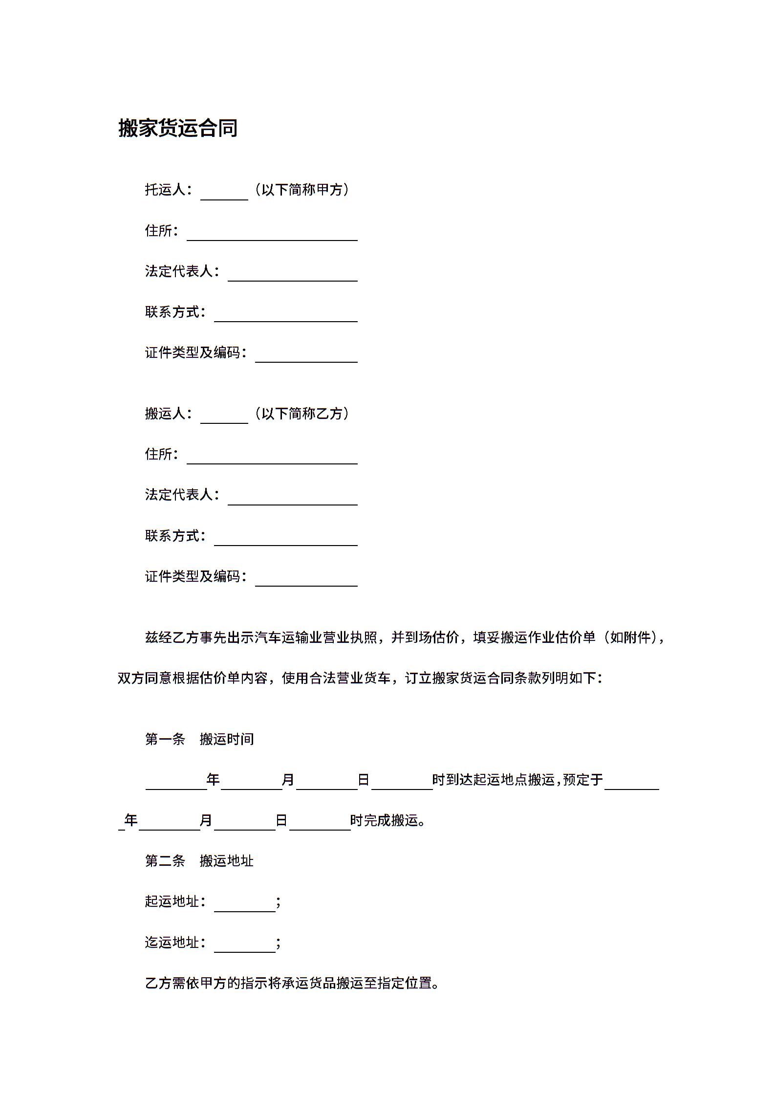 搬家货运合同
