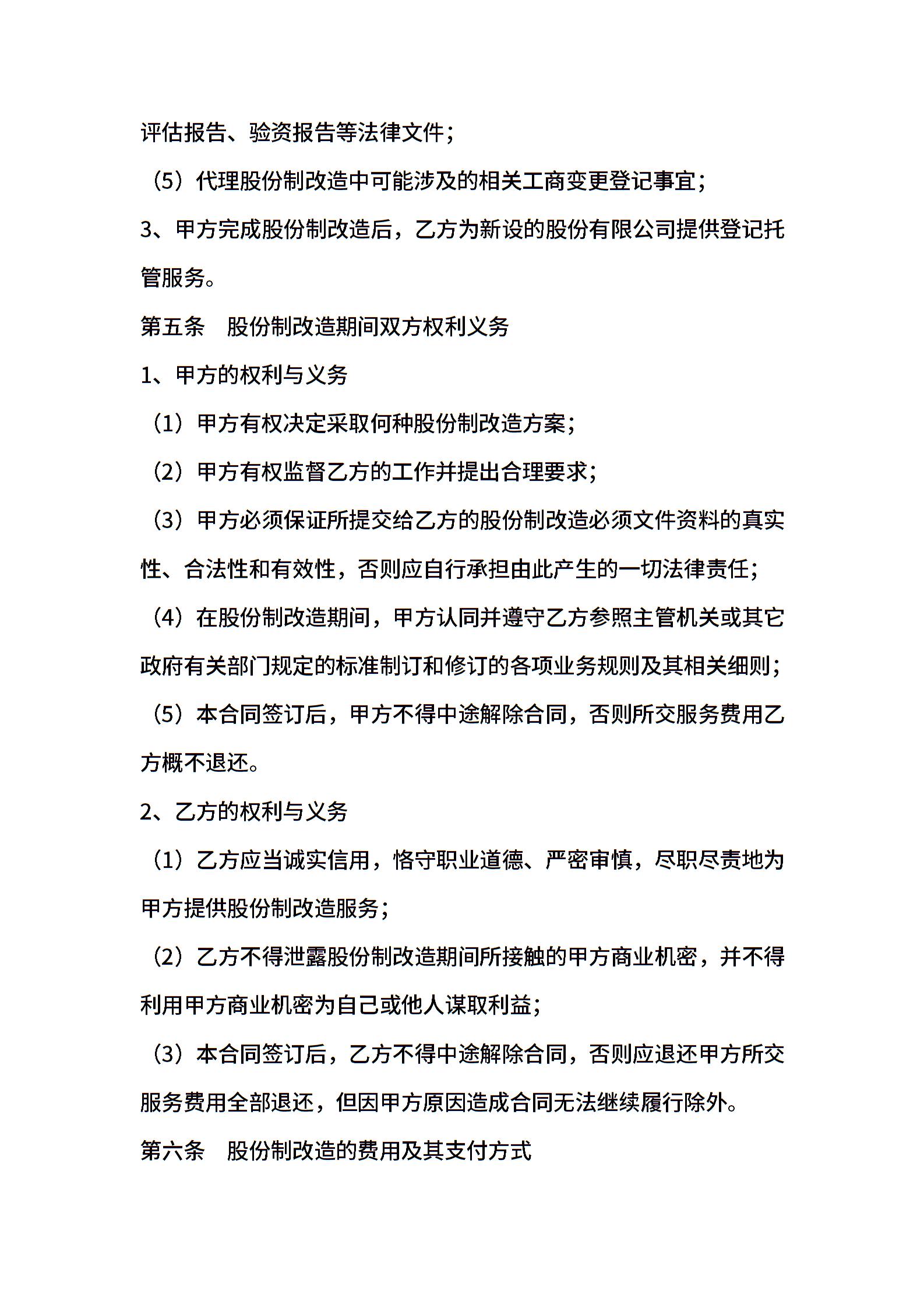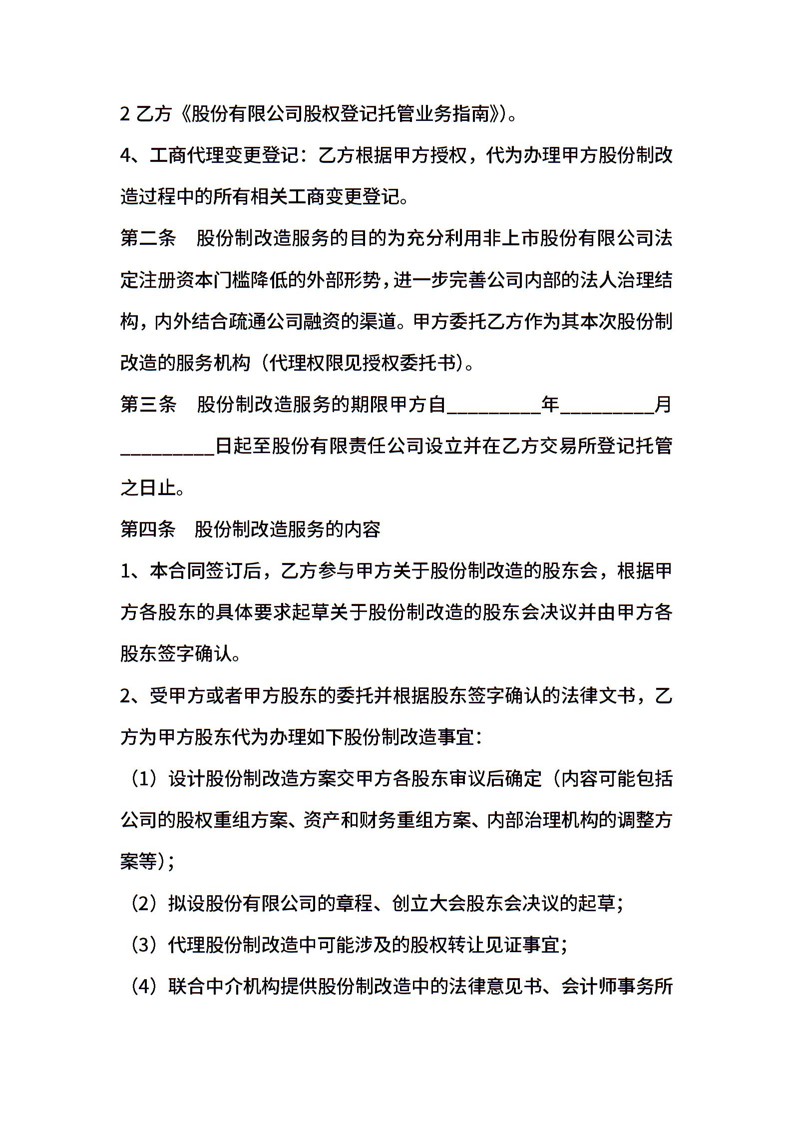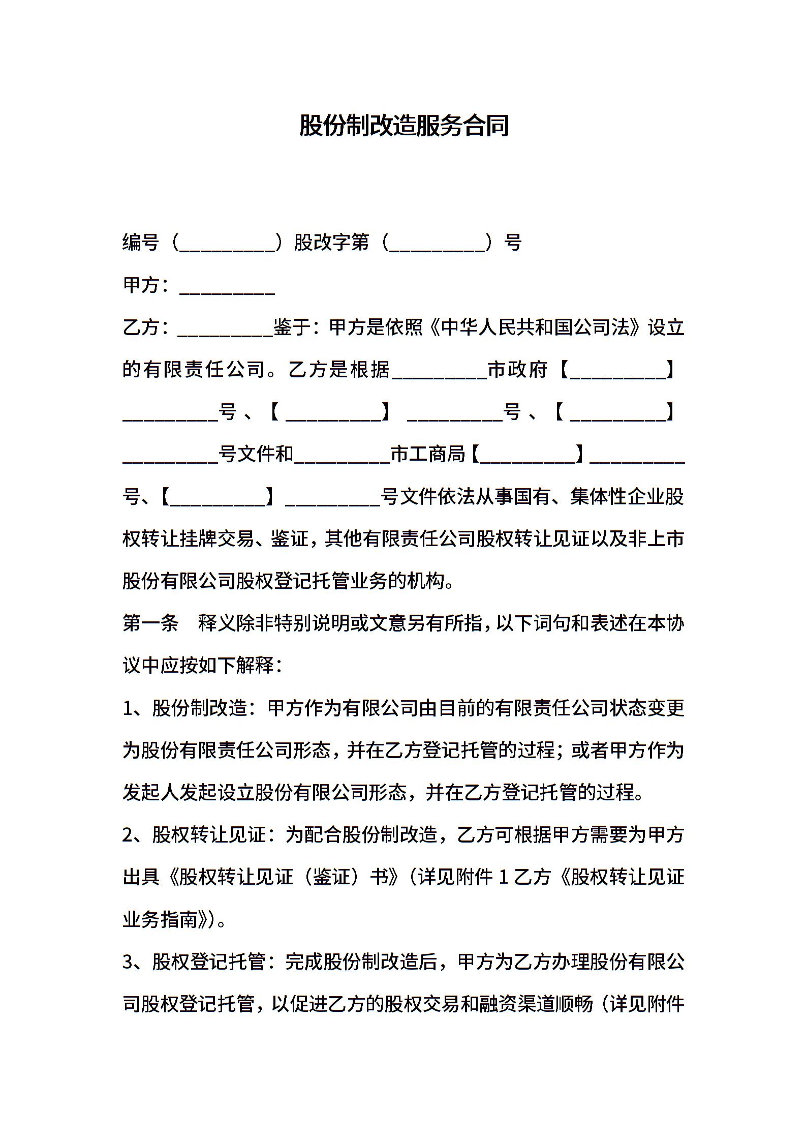 股份制改造服务合同_合同范本