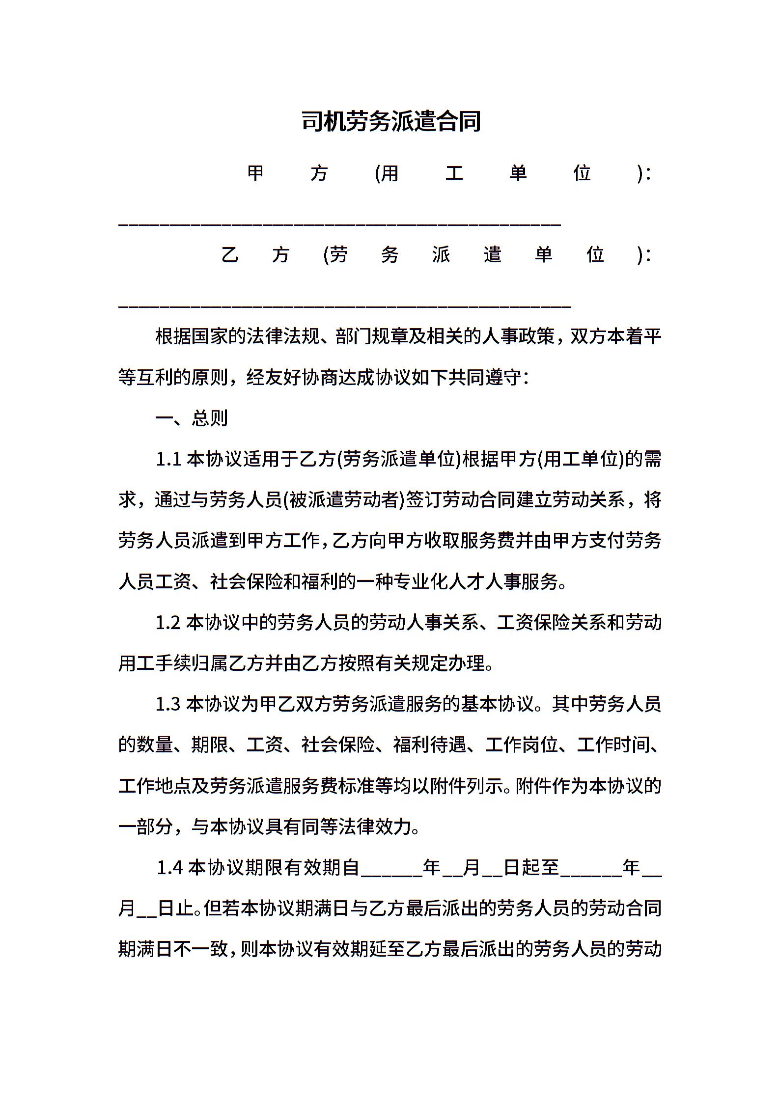 司机劳务派遣合同