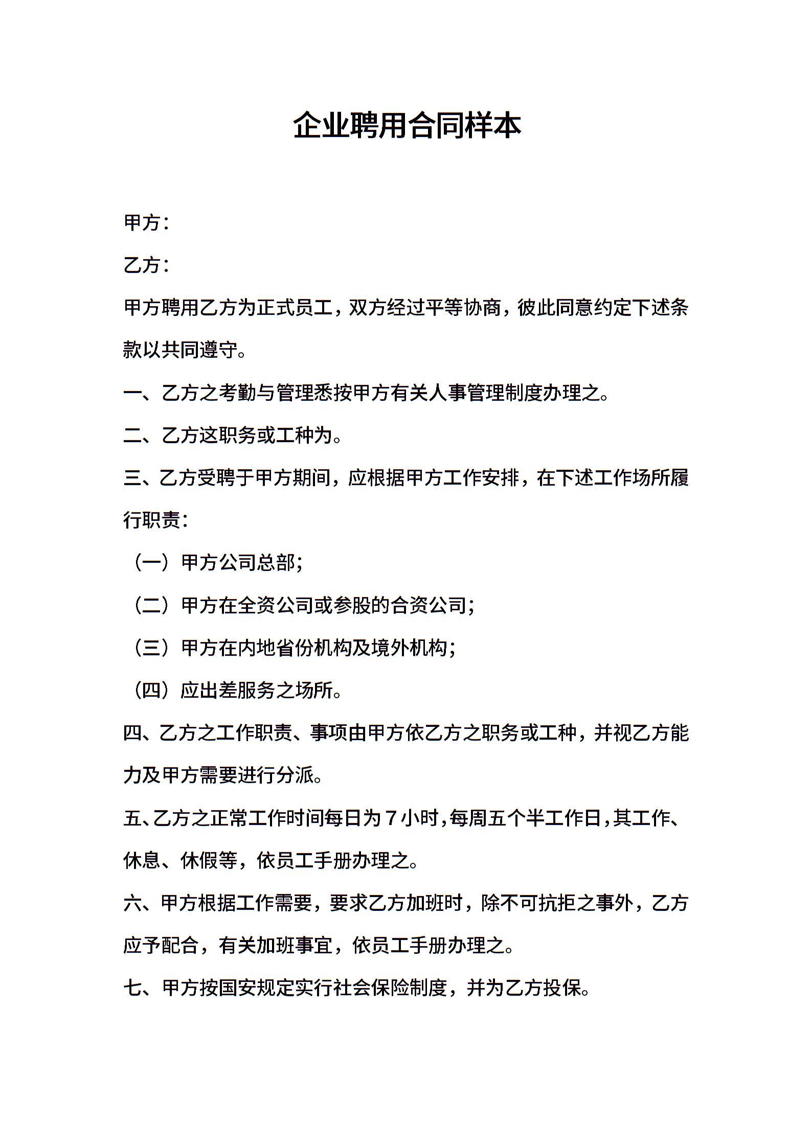 当前位置:量子办公 > 合同模板 > 聘用合同 >