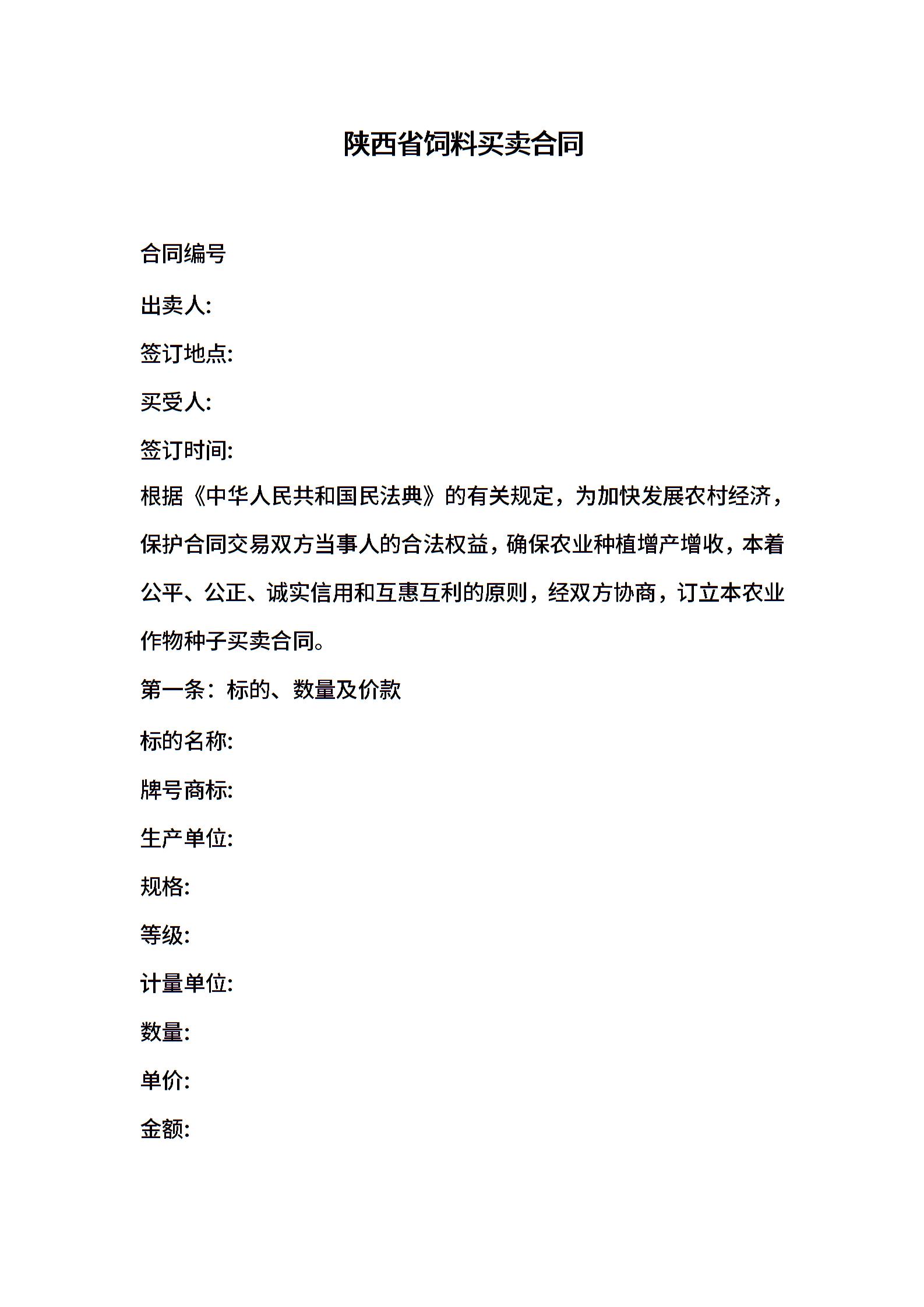 陕西省饲料买卖合同