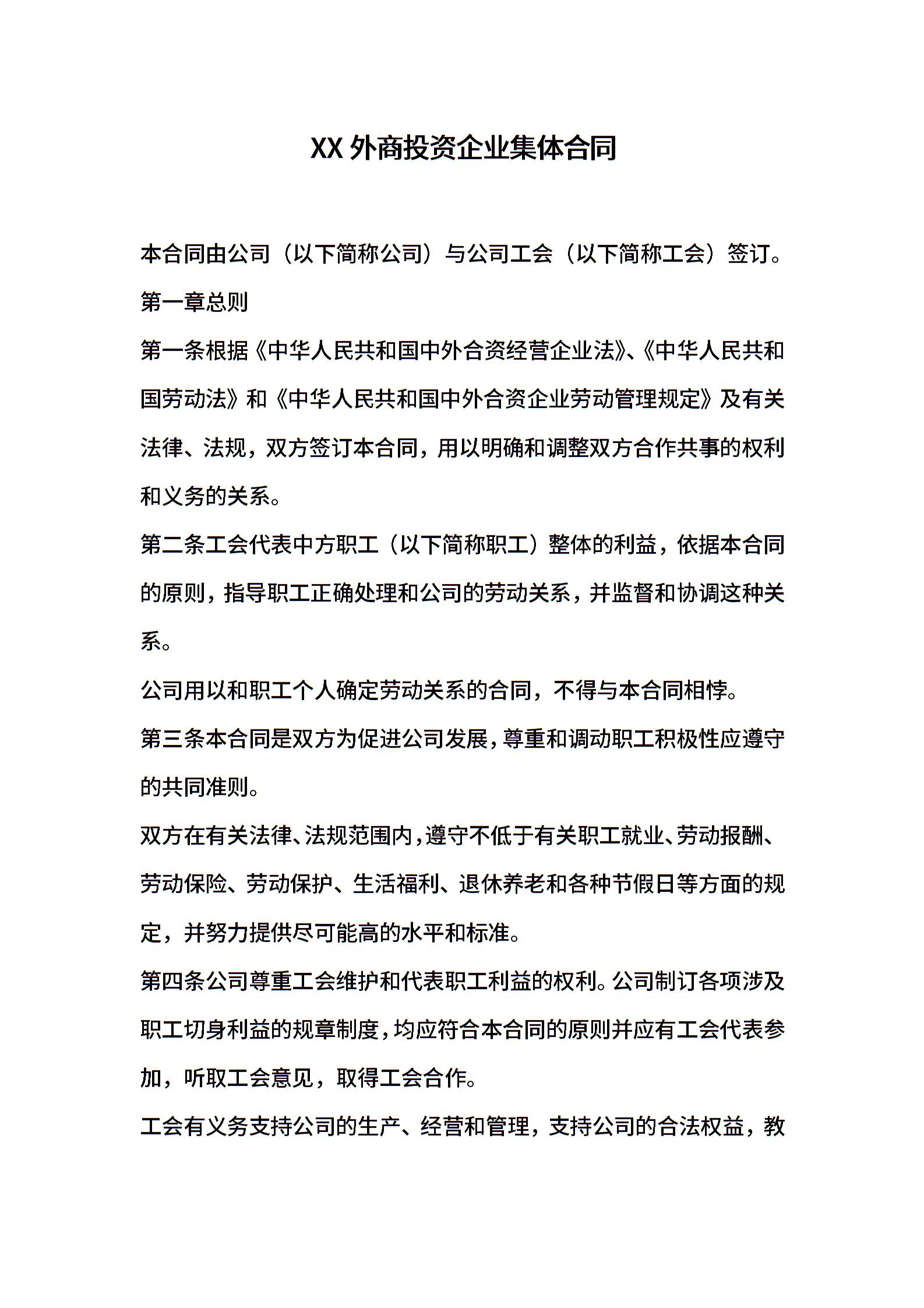 劳动合同范本 -外商投资企业集体合同
