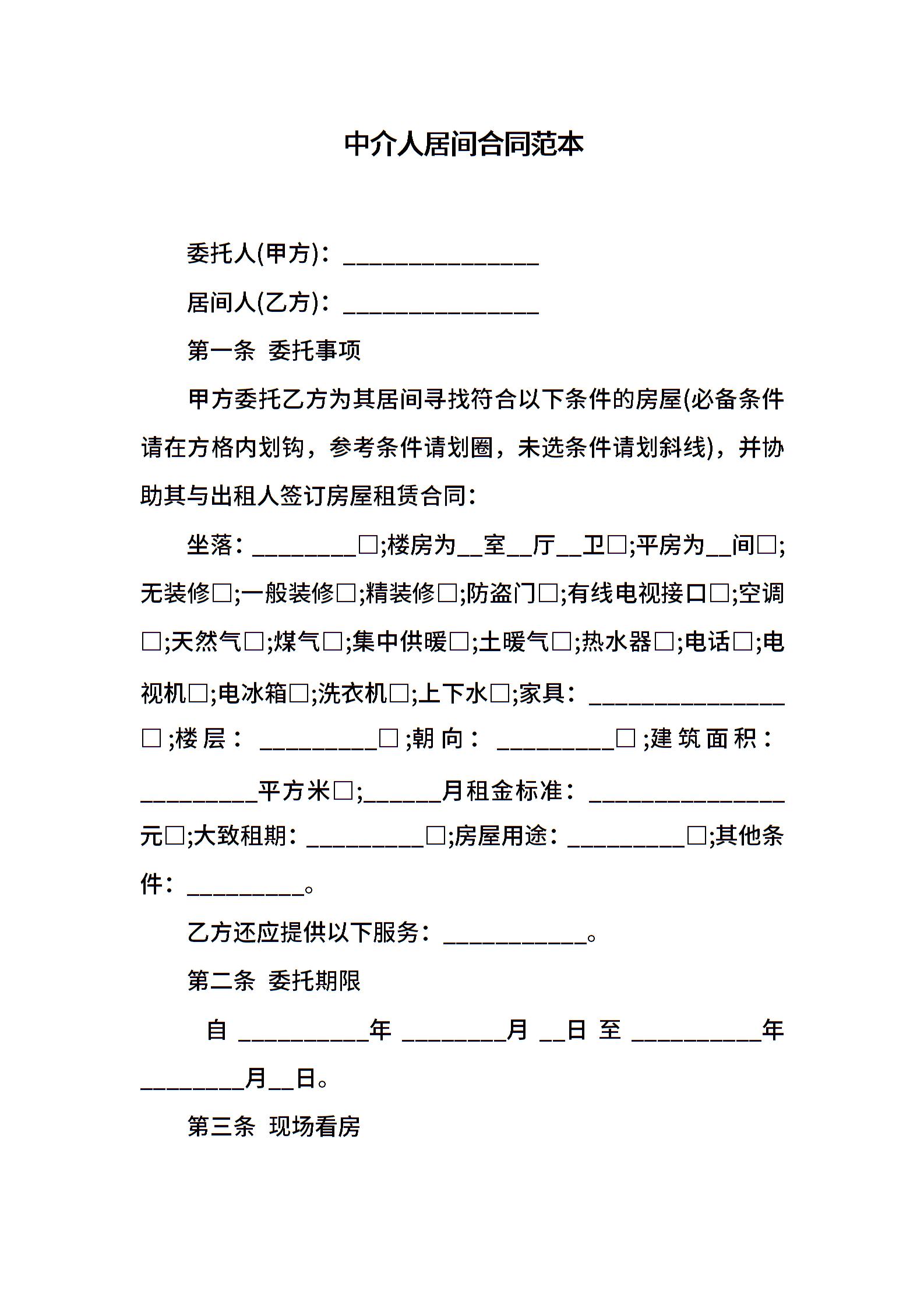 中介人居间合同范本