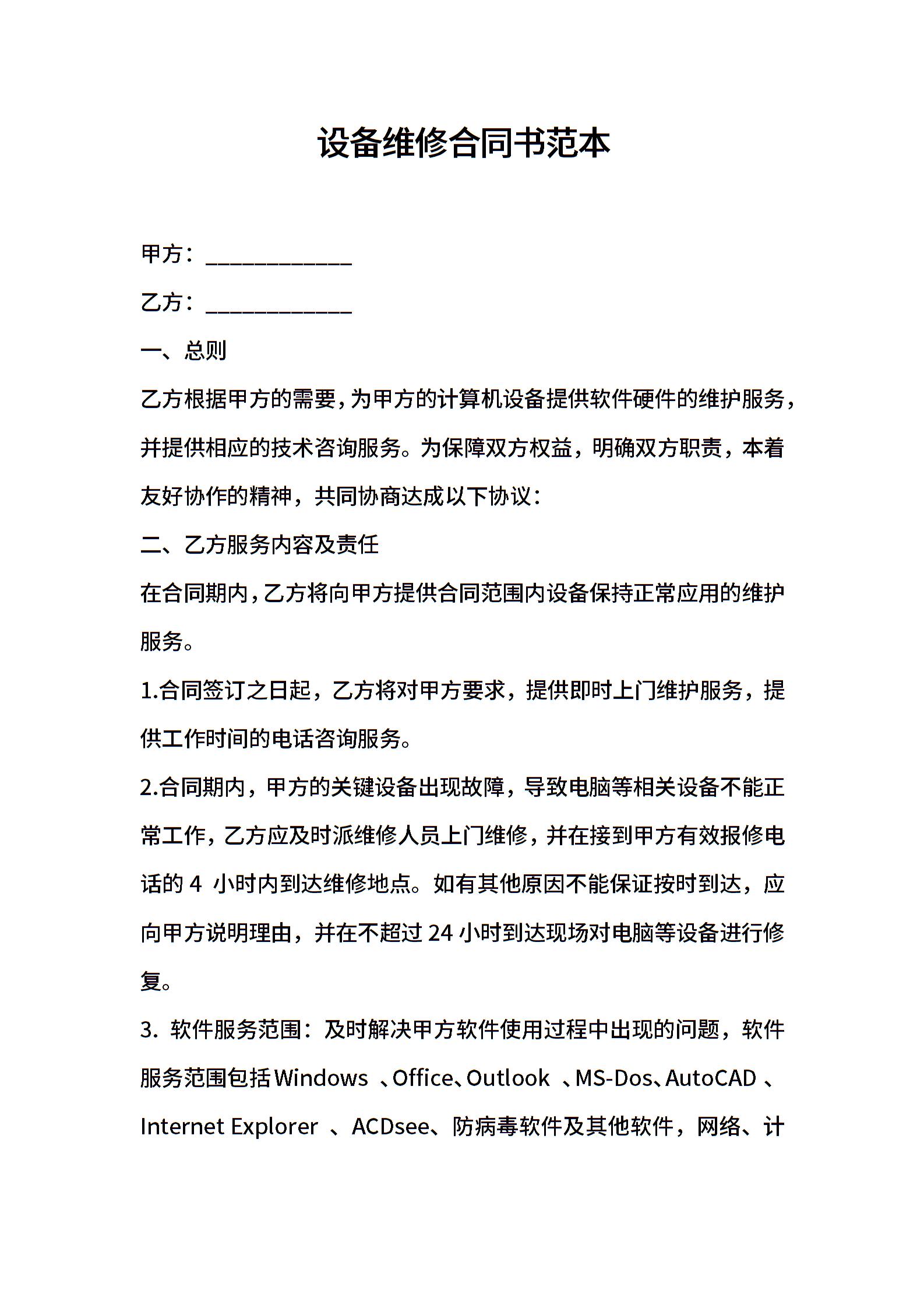 当前位置:量子办公 > 合同模板 > 维修合同 >