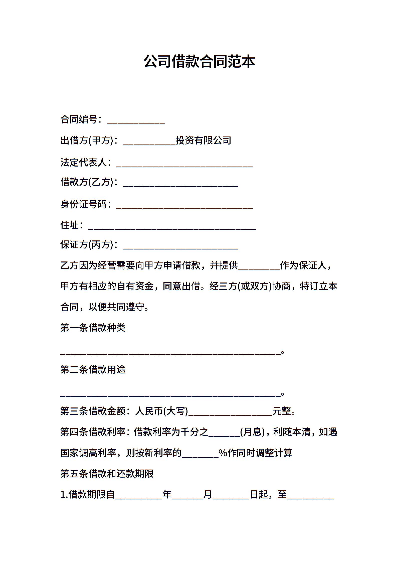 公司借款合同范本