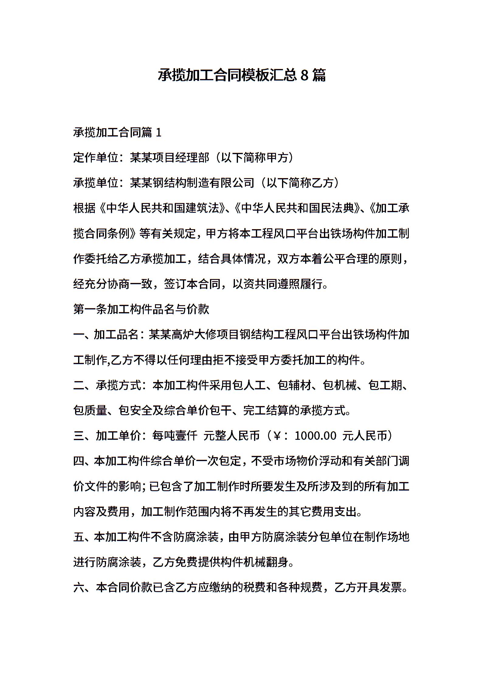 当前位置:量子办公 > 合同模板 > 加工合同 >