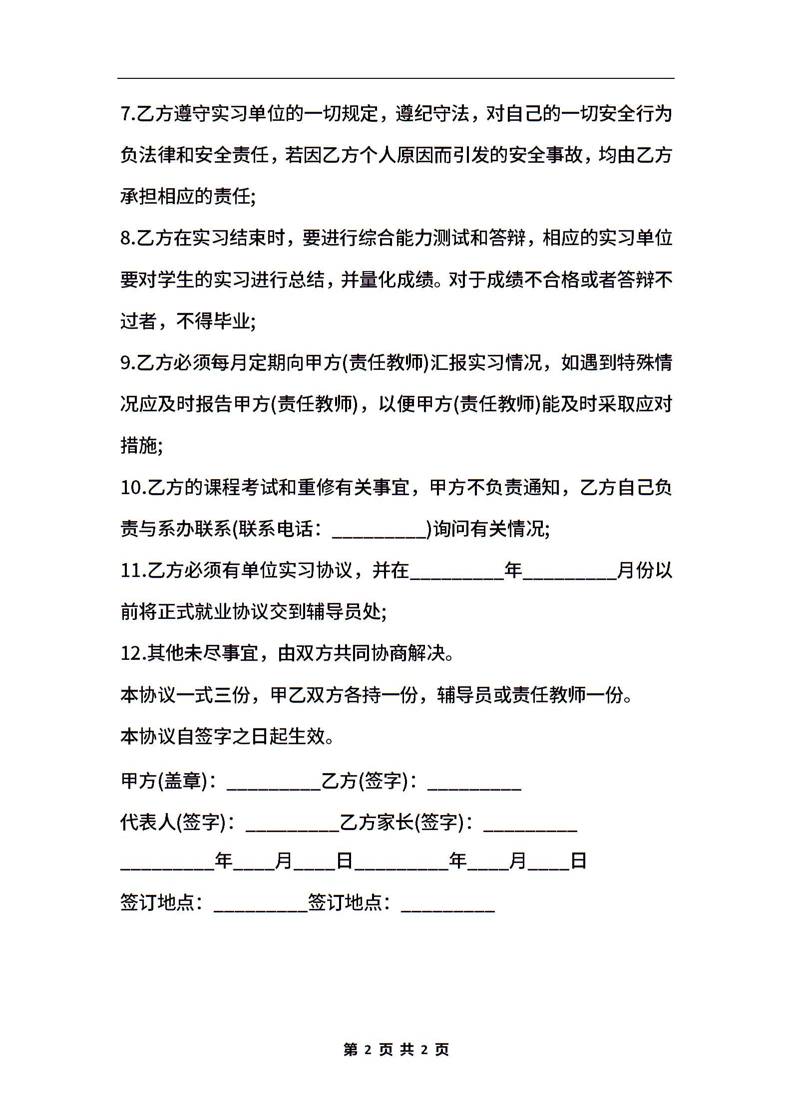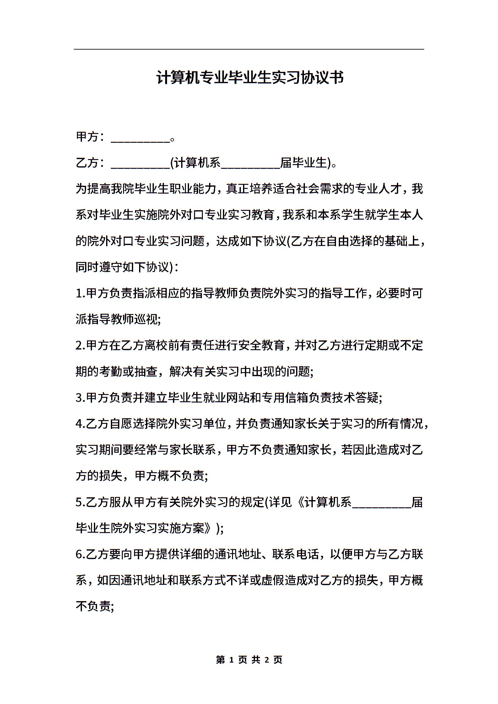 计算机专业毕业生实习协议书