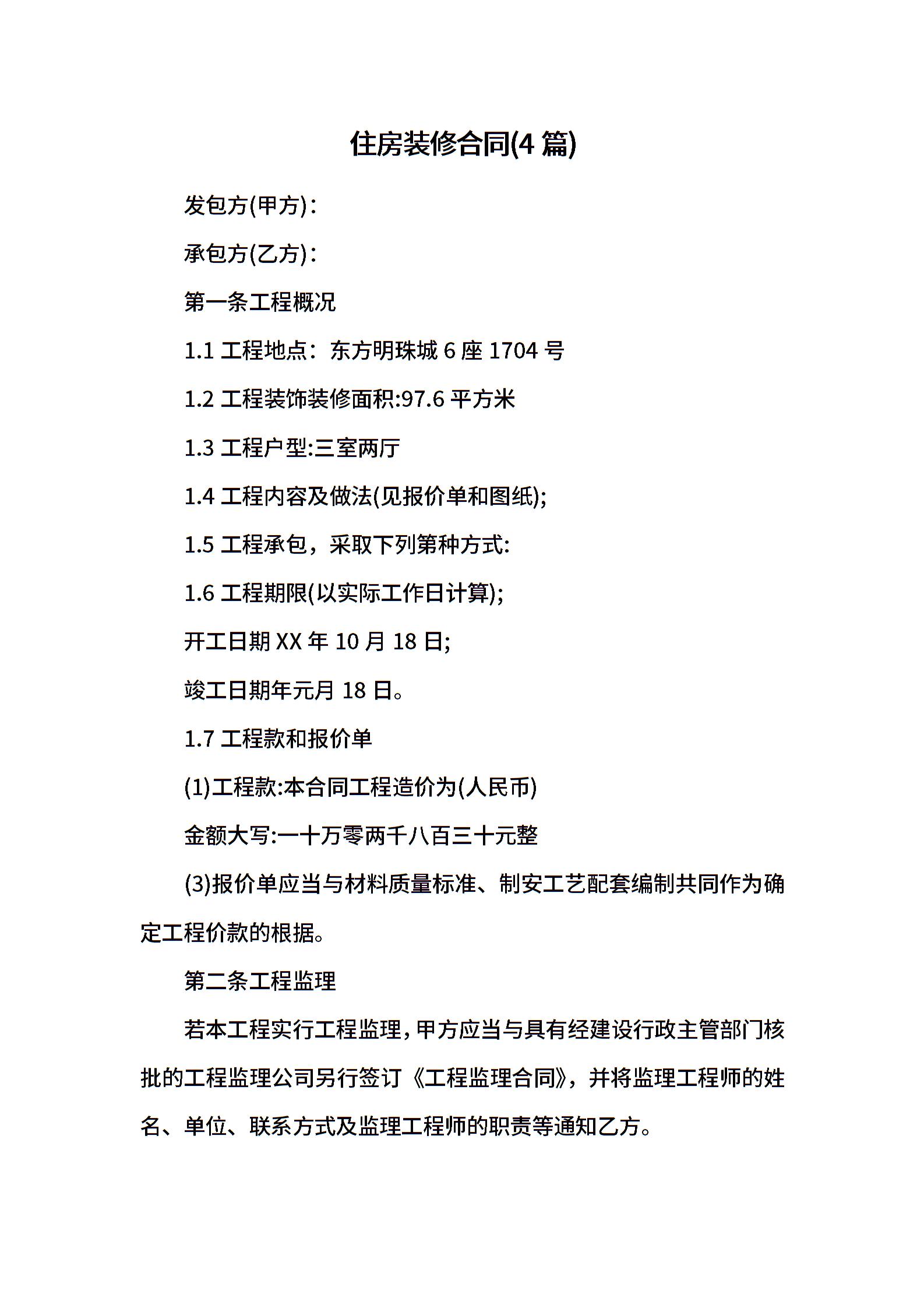 住房装修合同(4篇)