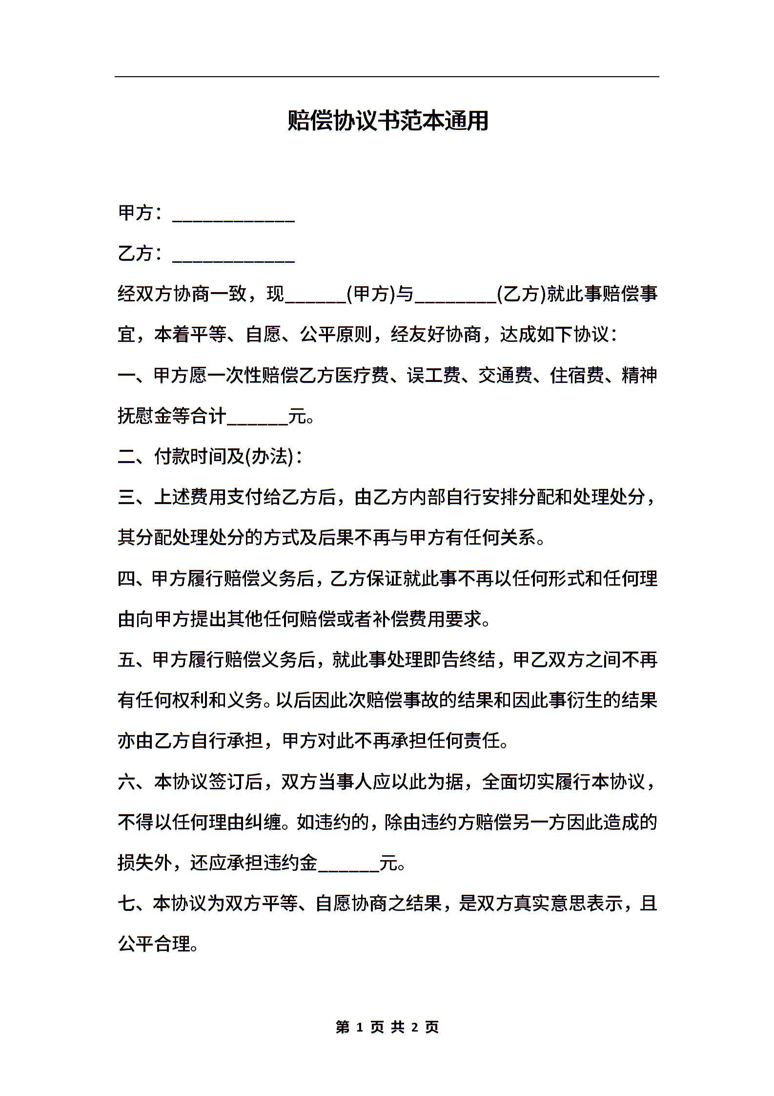 当前位置:量子办公 > 合同模板 > 赔偿协议 >
