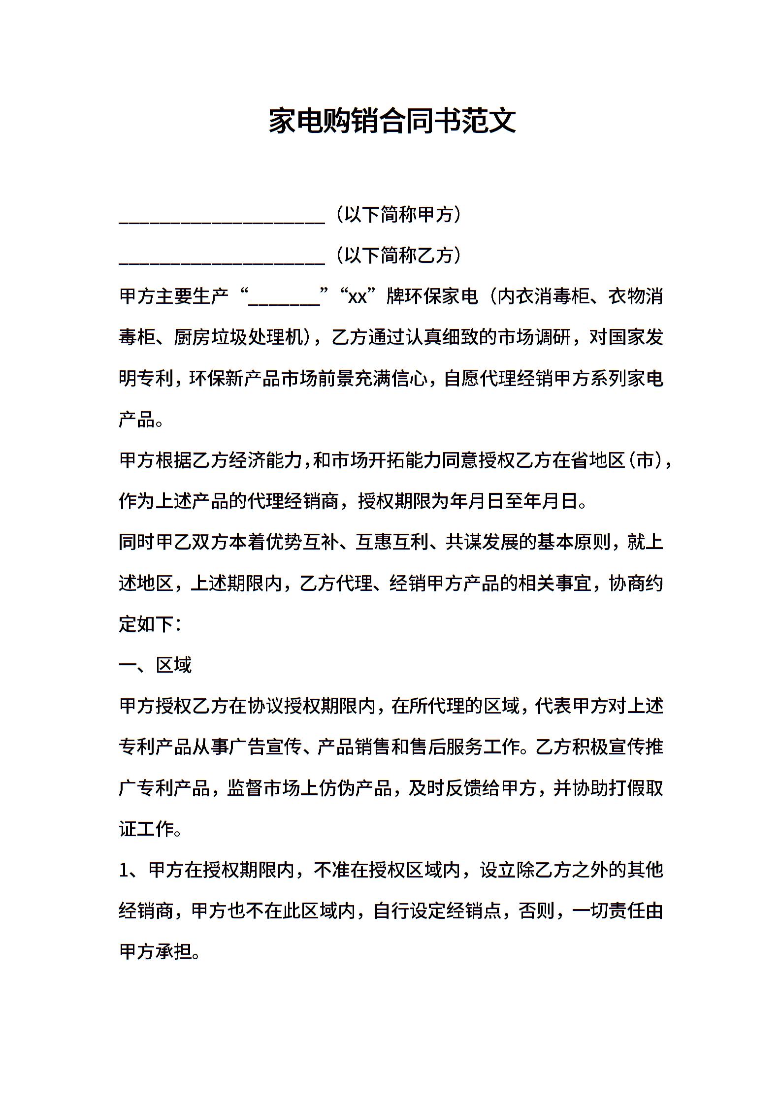 家电购销合同书范文