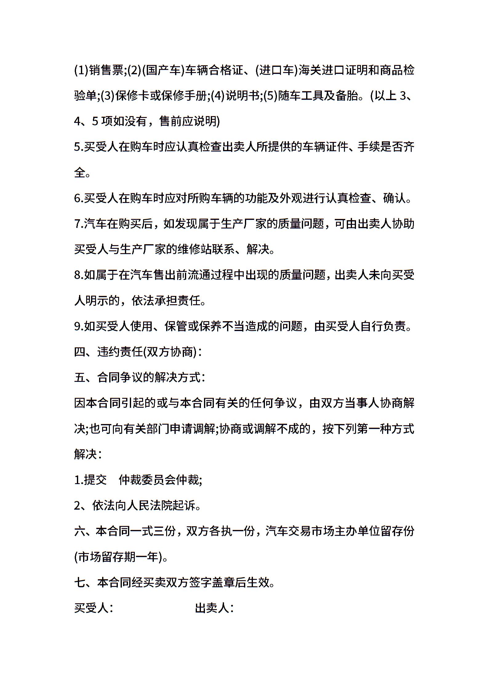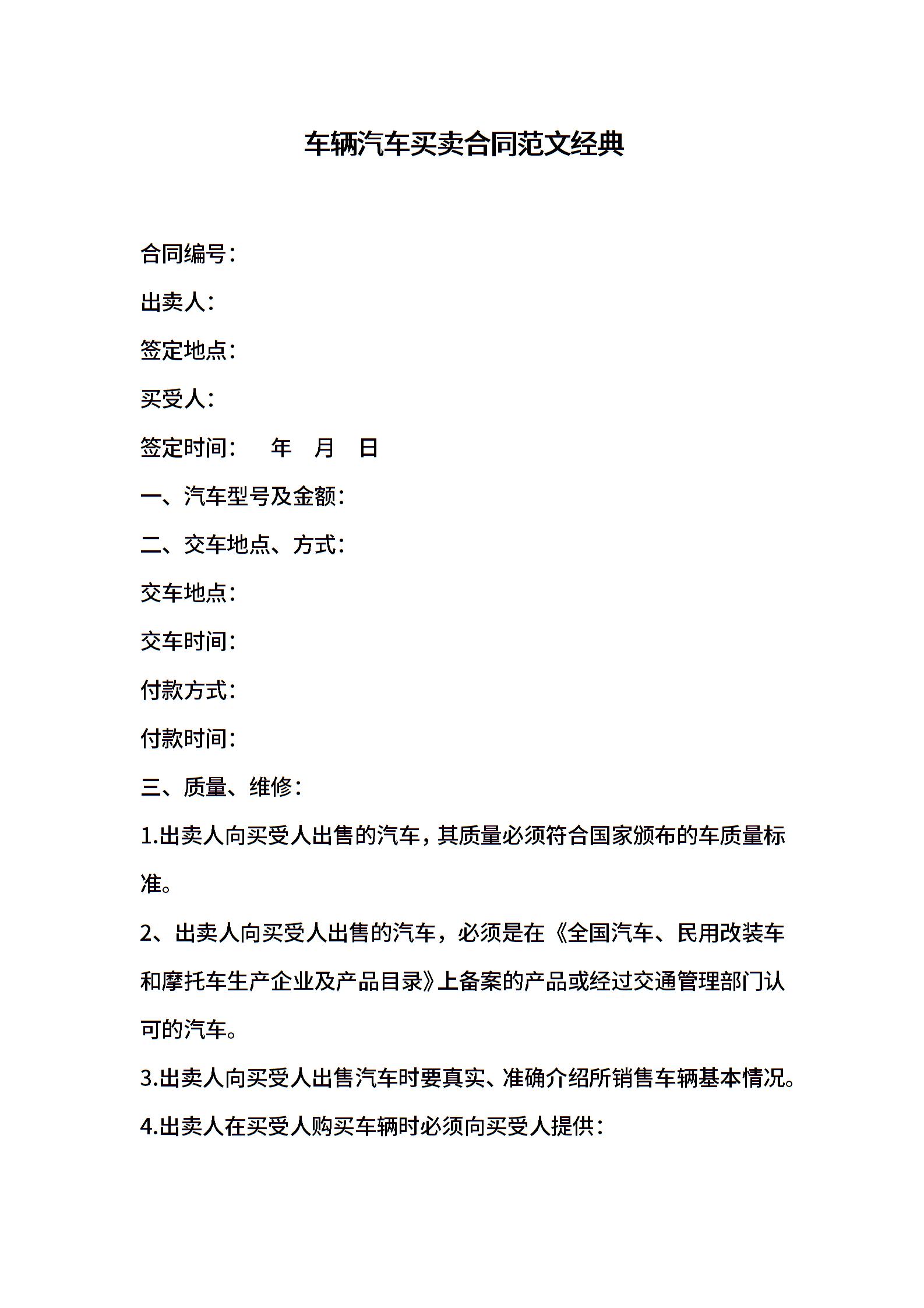 车辆汽车买卖合同范文经典