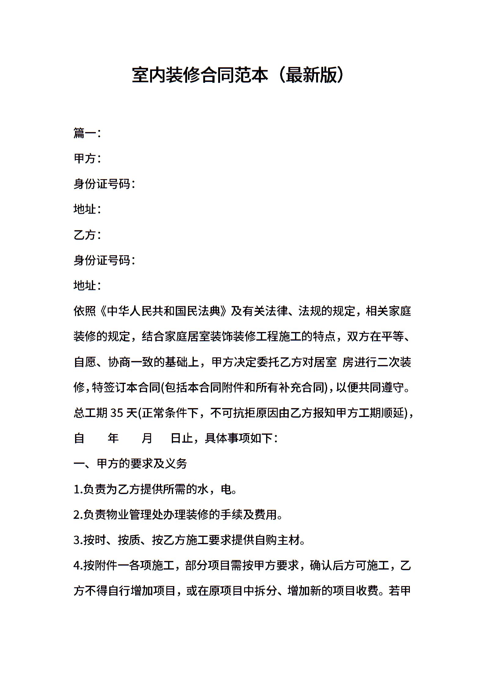 室内装修合同范本(最新版)