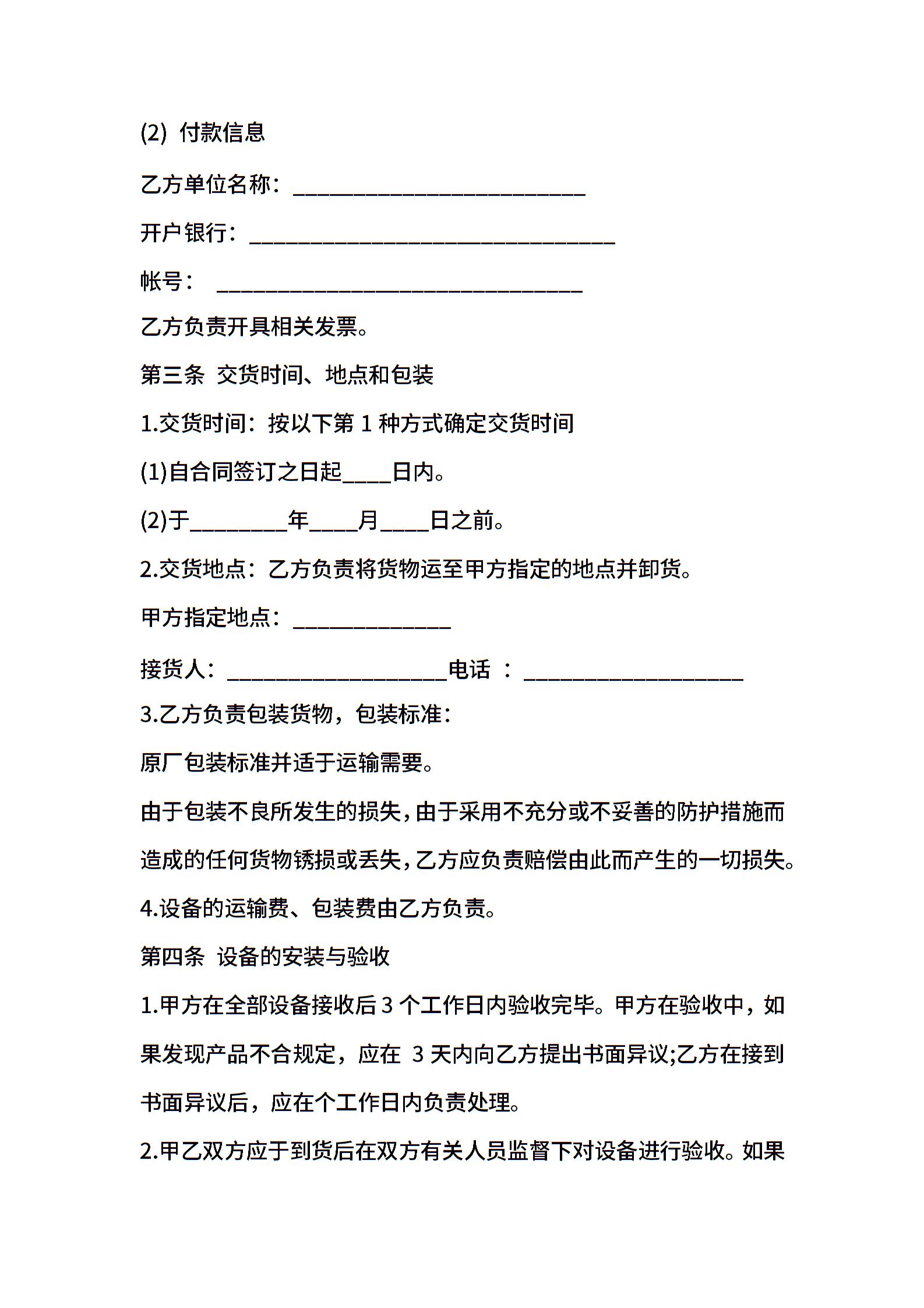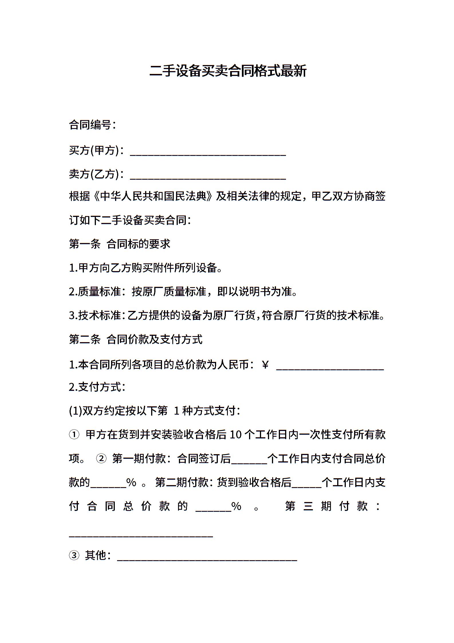 二手设备买卖合同格式最新