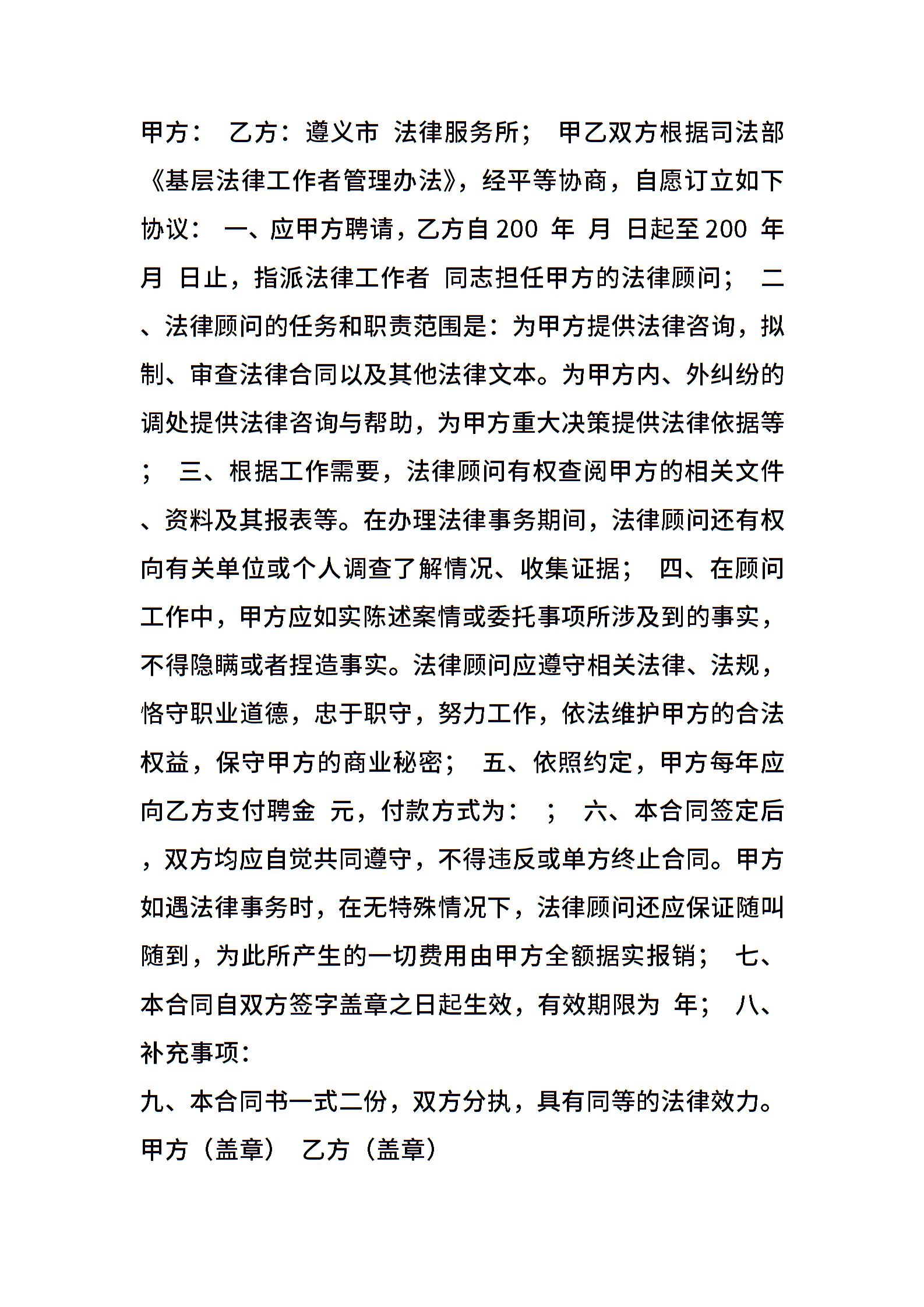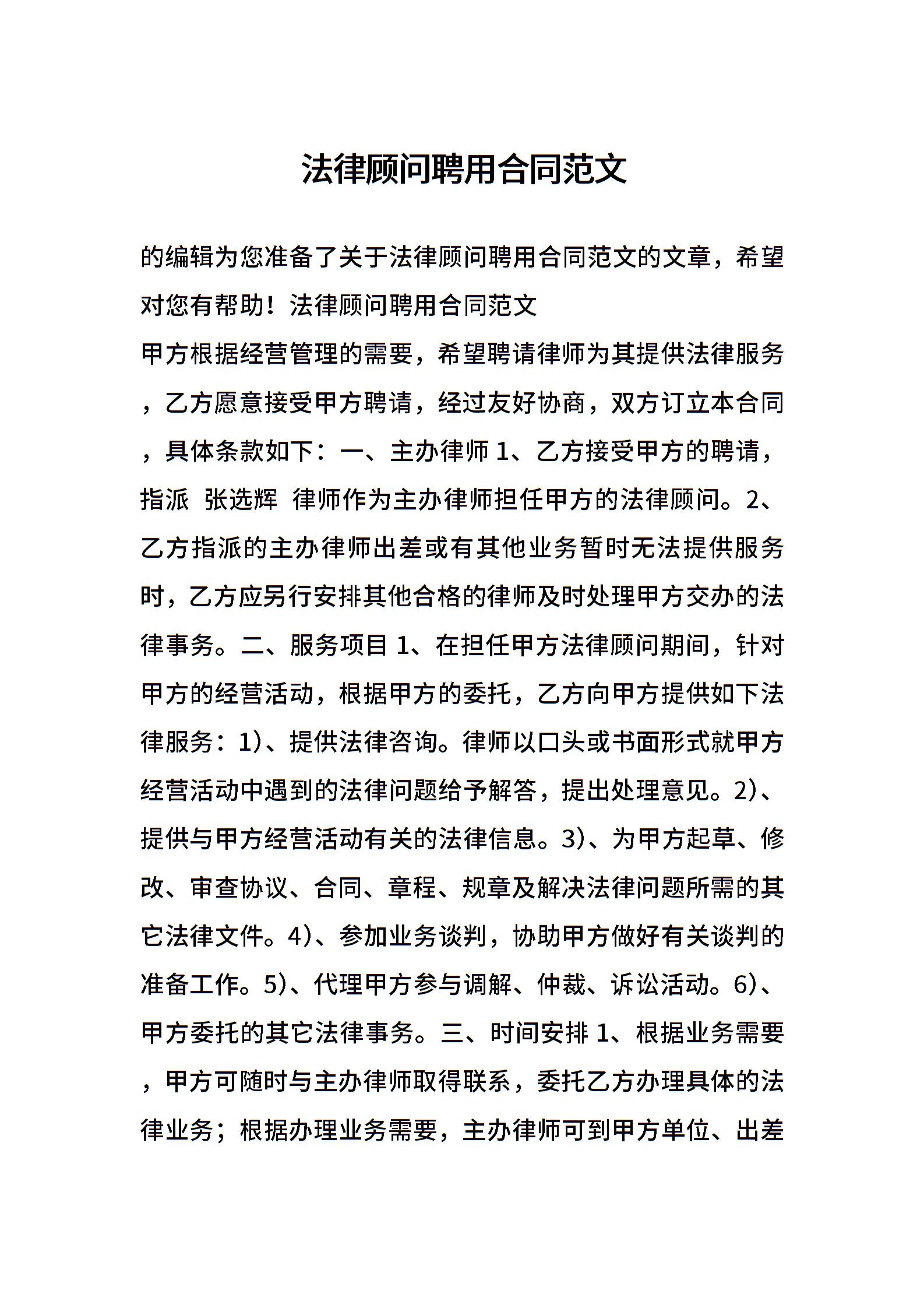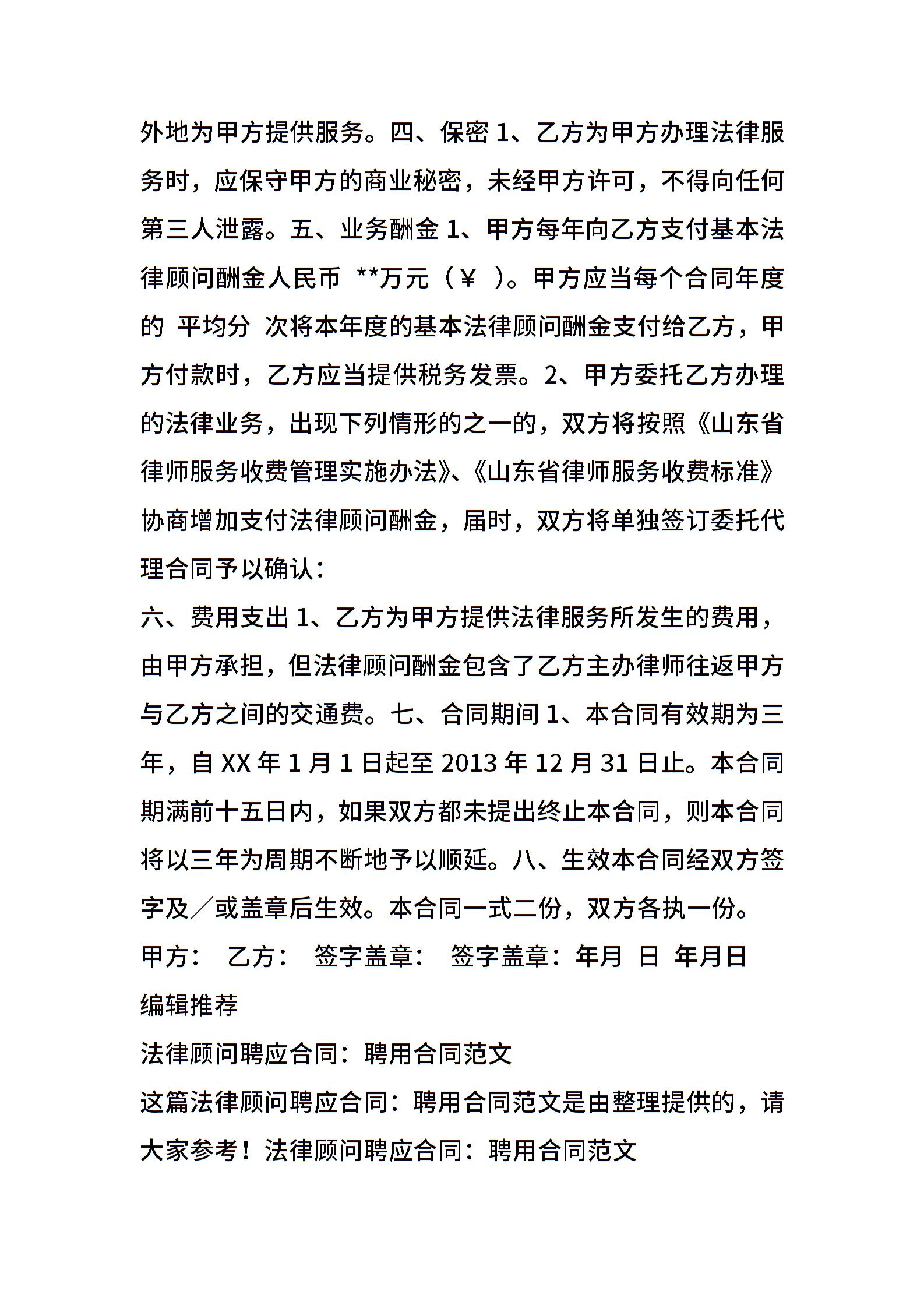 法律顾问聘用合同范文