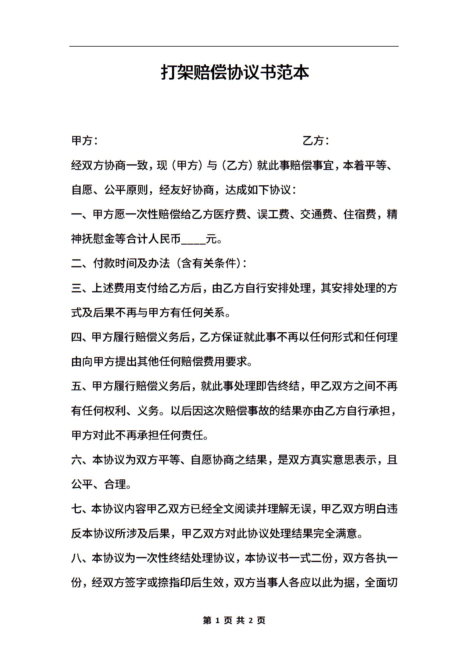 当前位置:量子办公 > 合同模板 > 赔偿协议 >