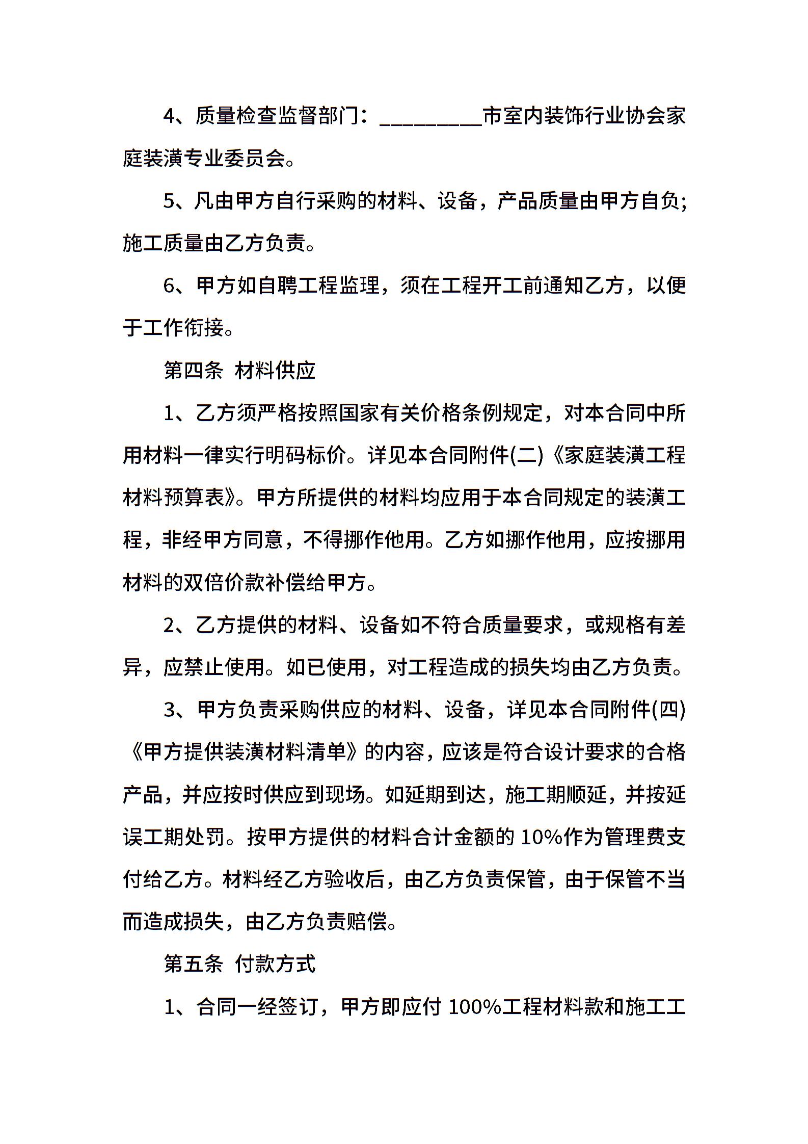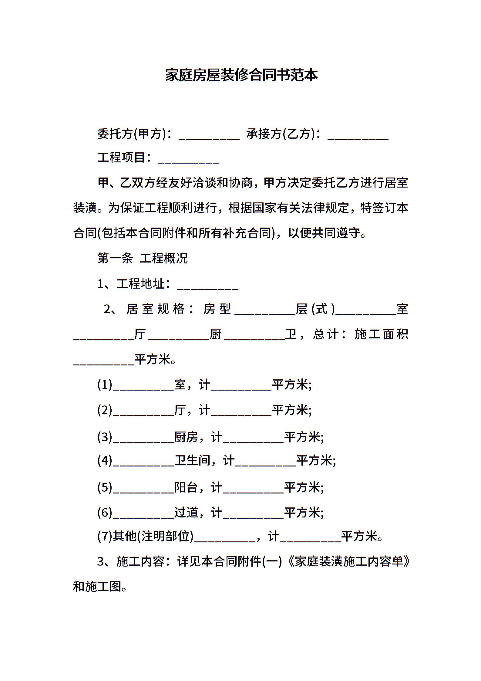 家庭房屋装修合同书范本