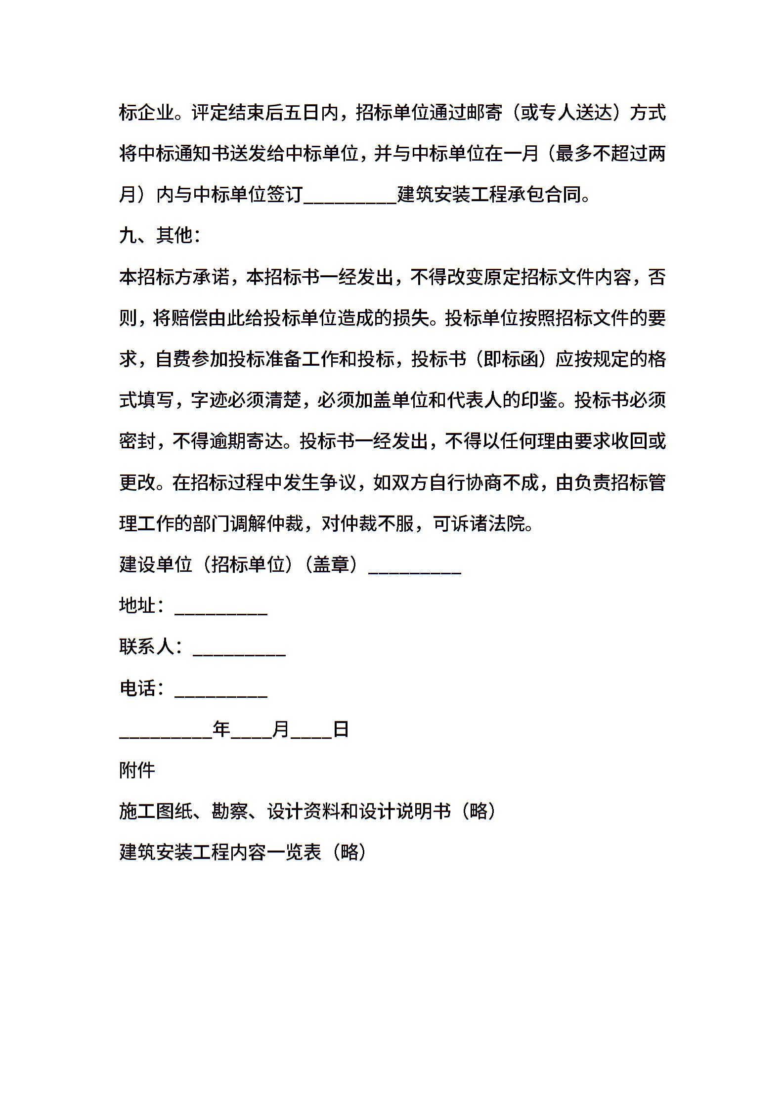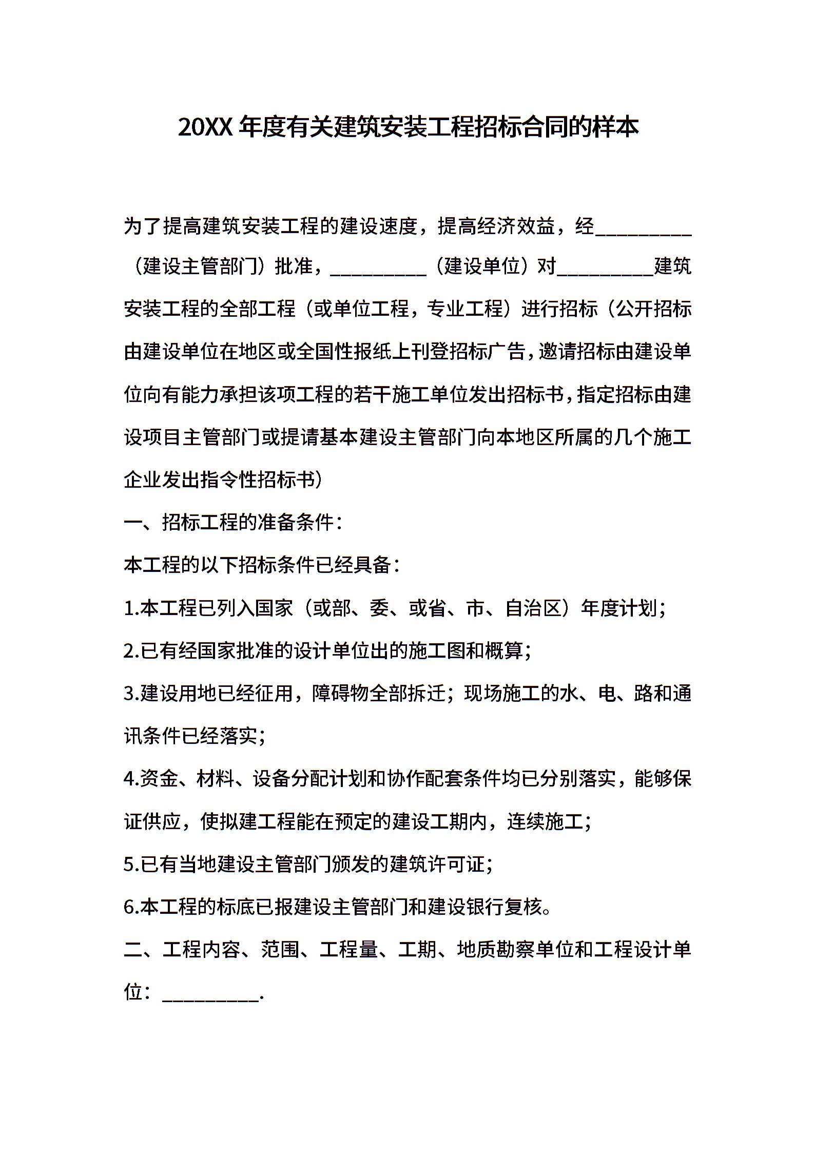 2021年度有关建筑安装工程招标合同的样本