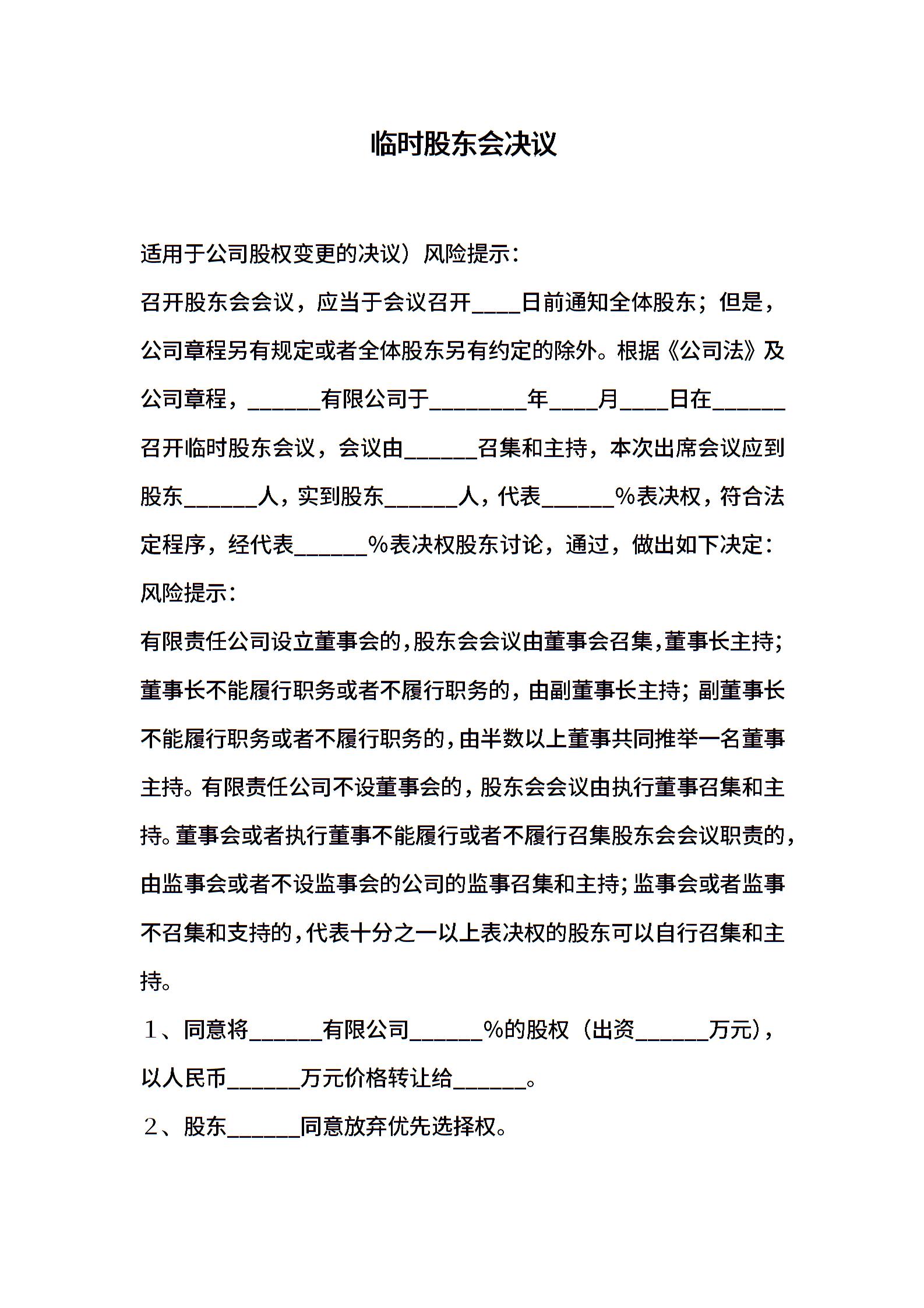 当前位置:量子办公 > 合同模板 > 股东会决议 >