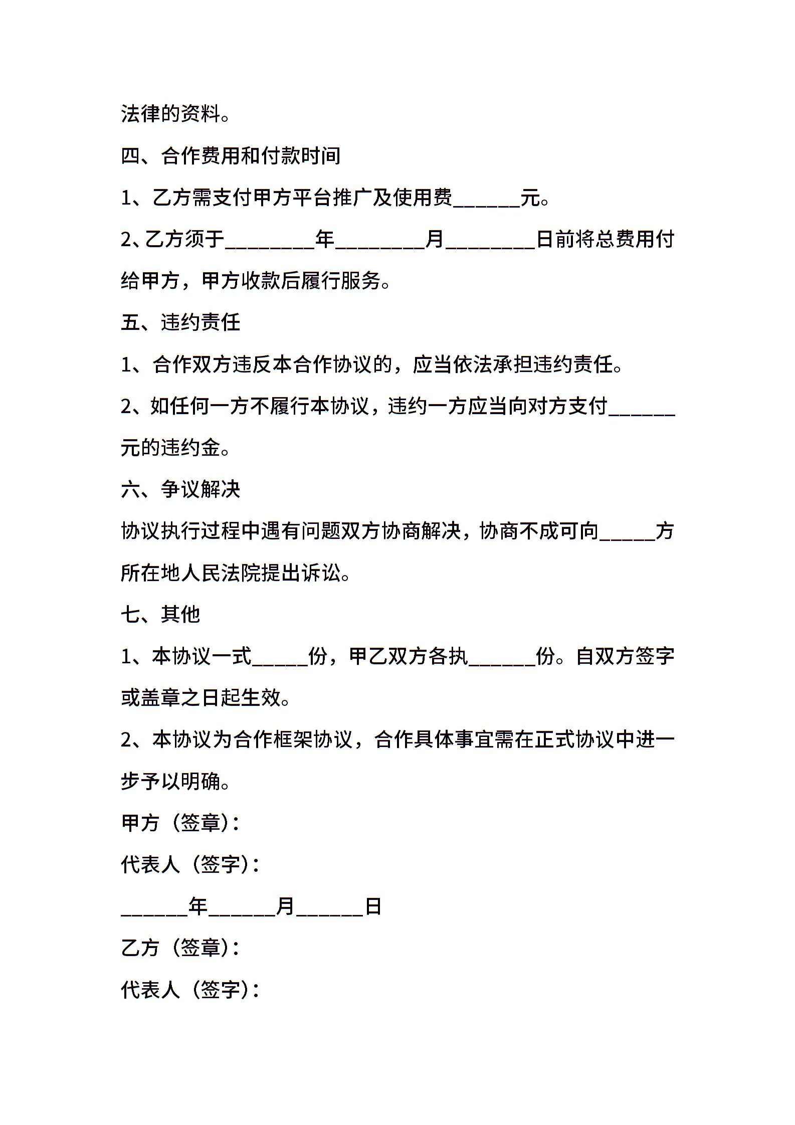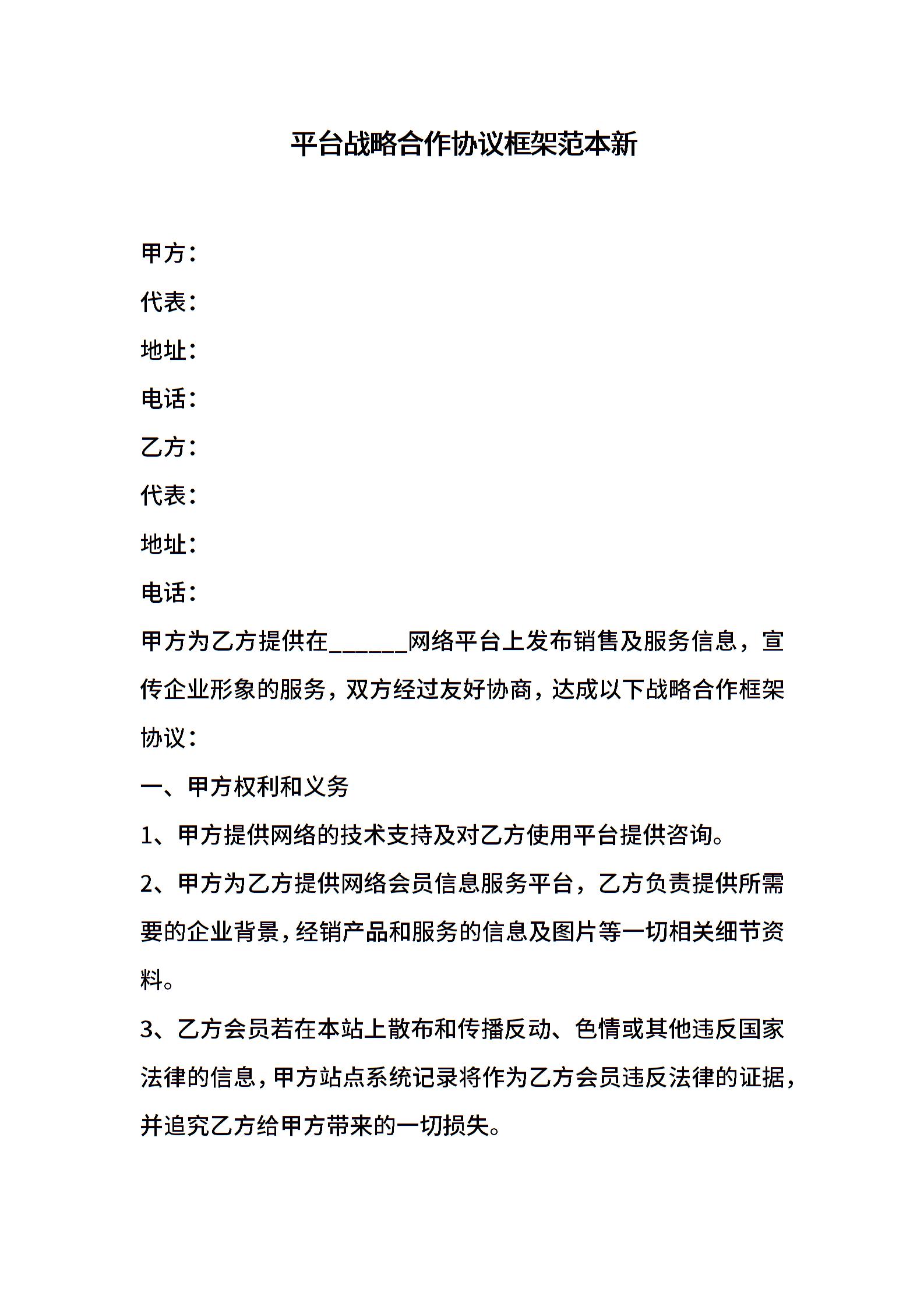 平台战略合作协议框架范本新