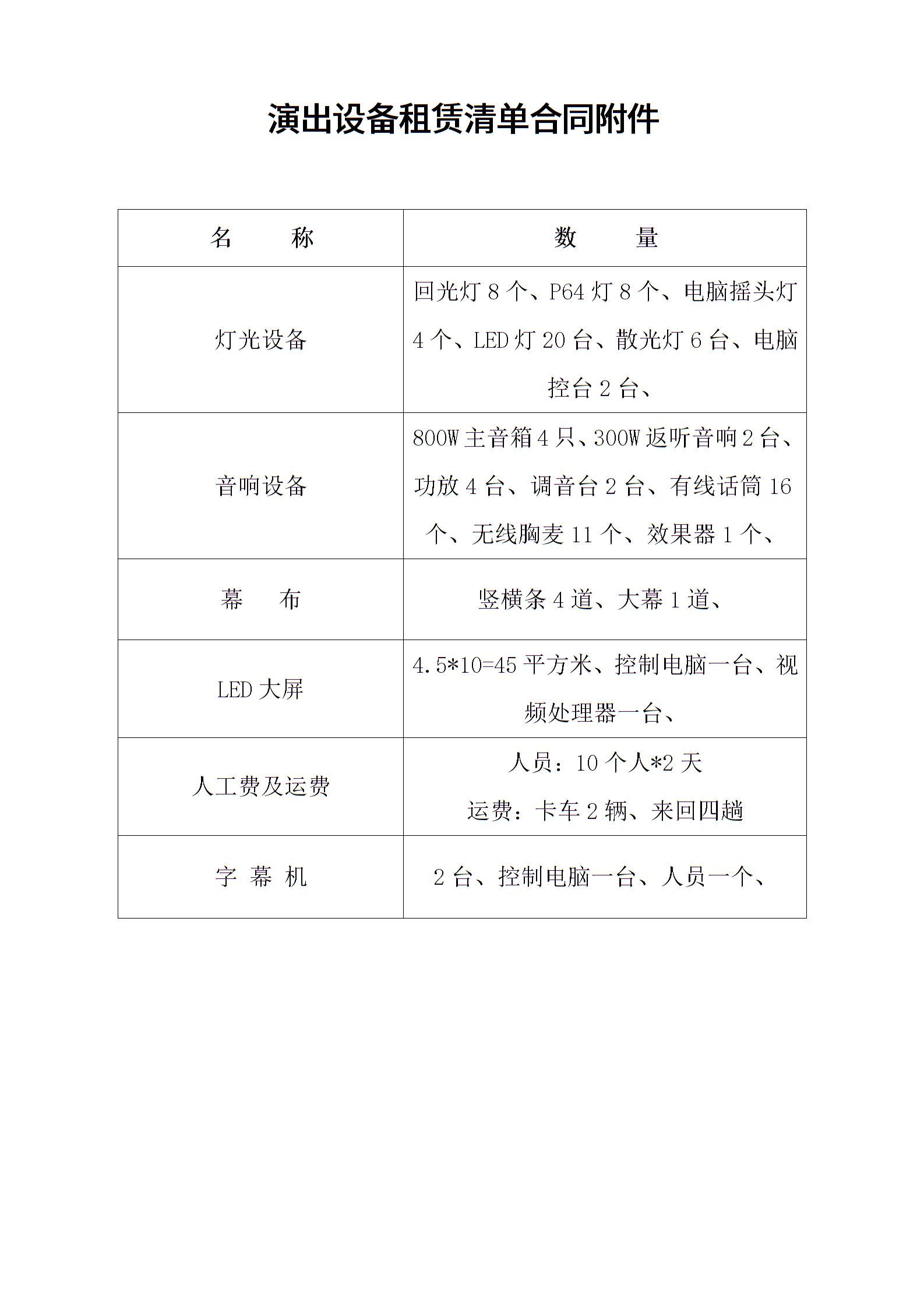 演艺器材租赁合同