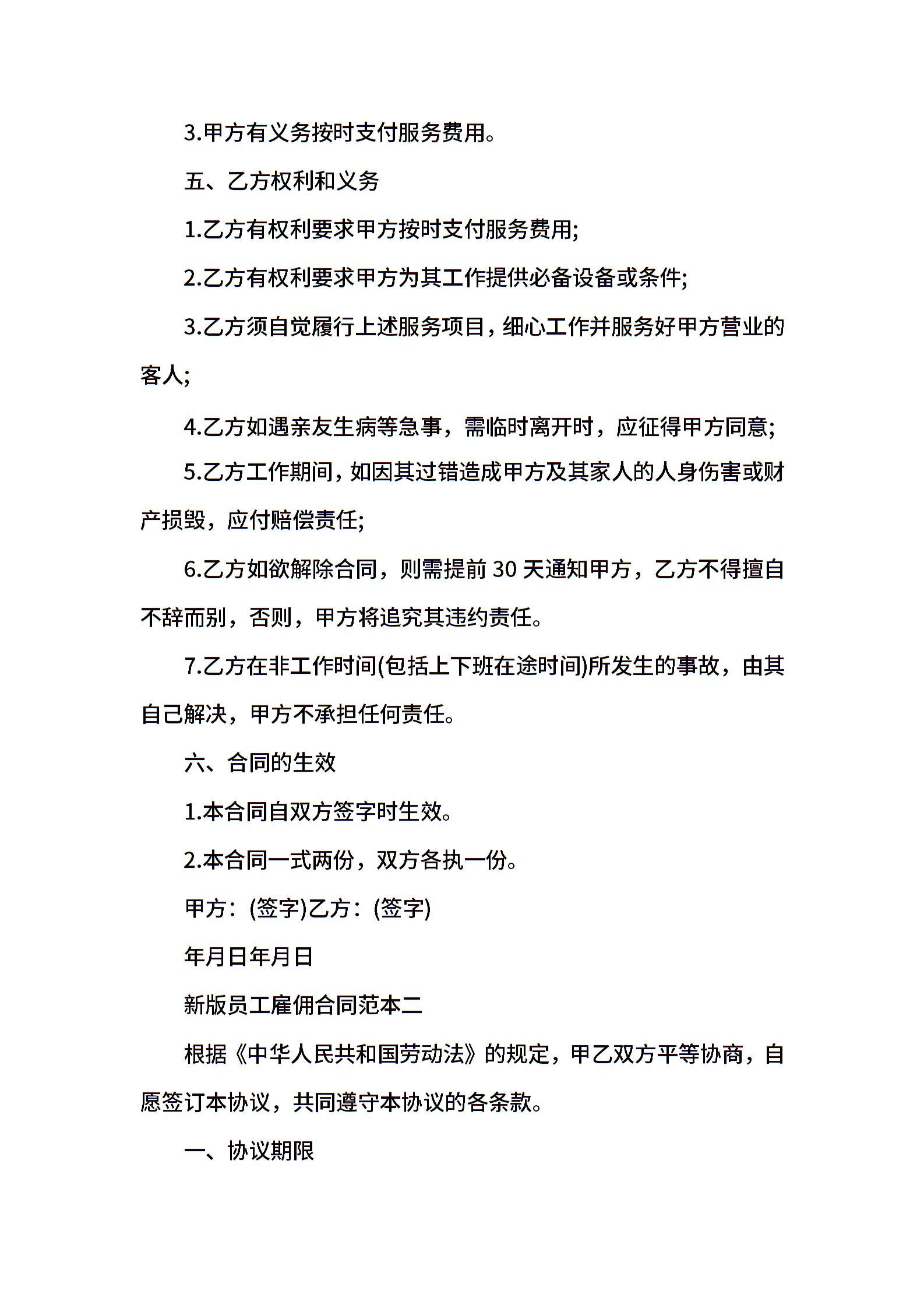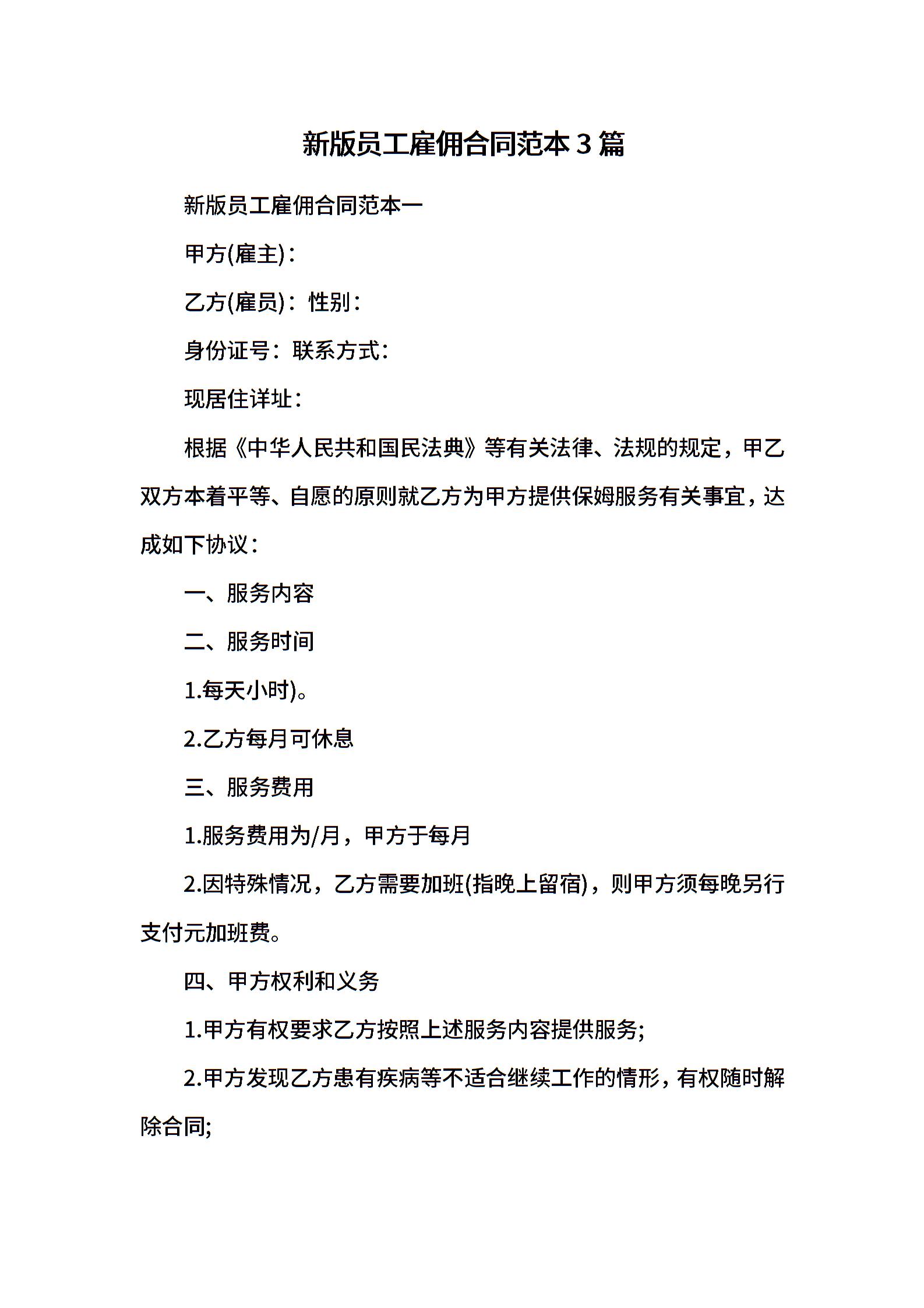 新版员工雇佣合同范本3篇