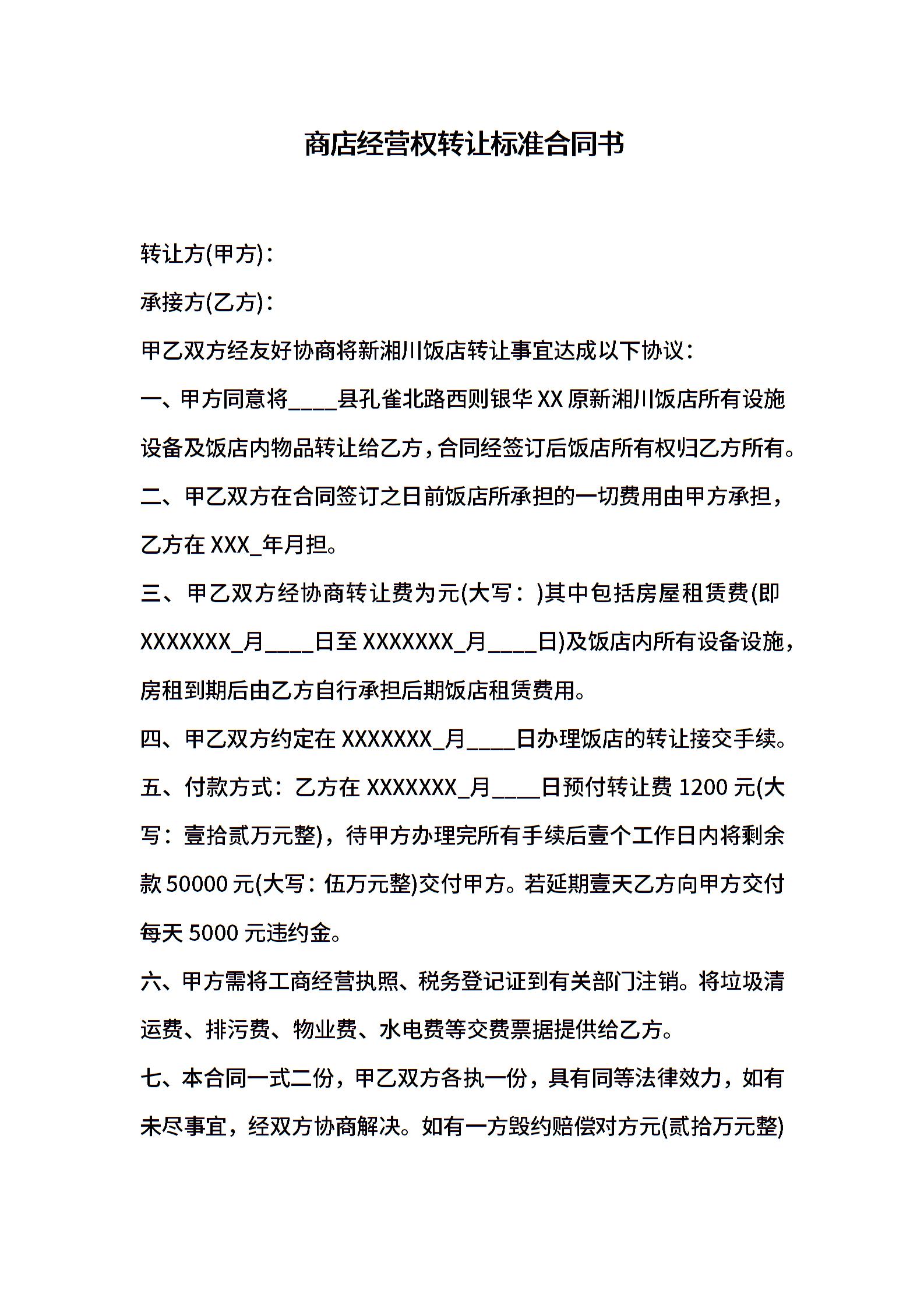 商店经营权转让标准合同书