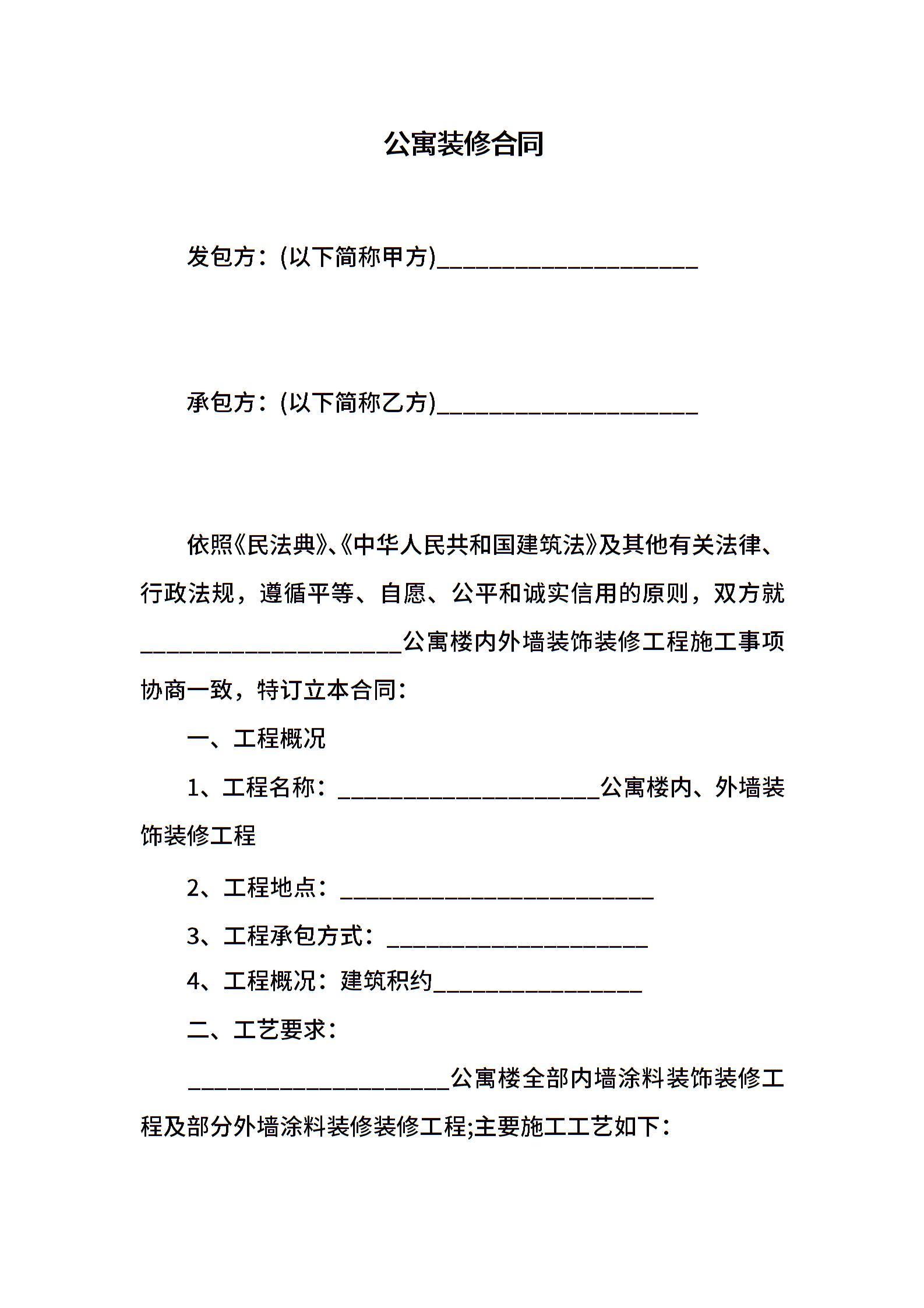 公寓装修合同
