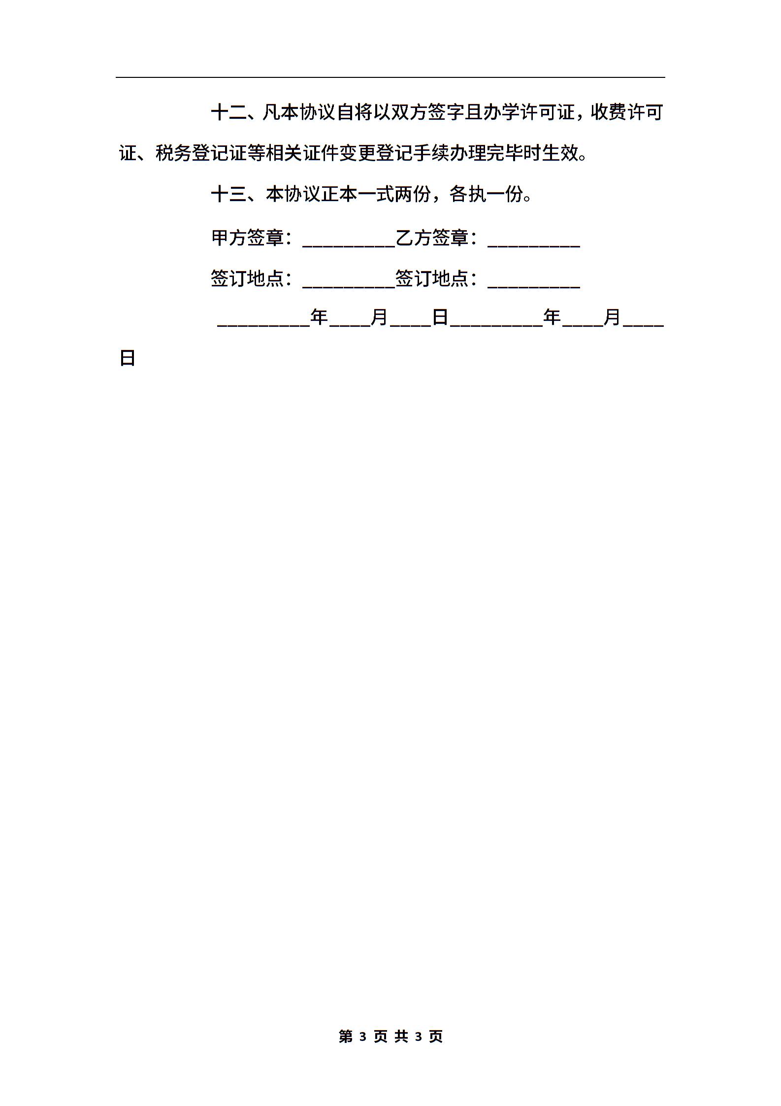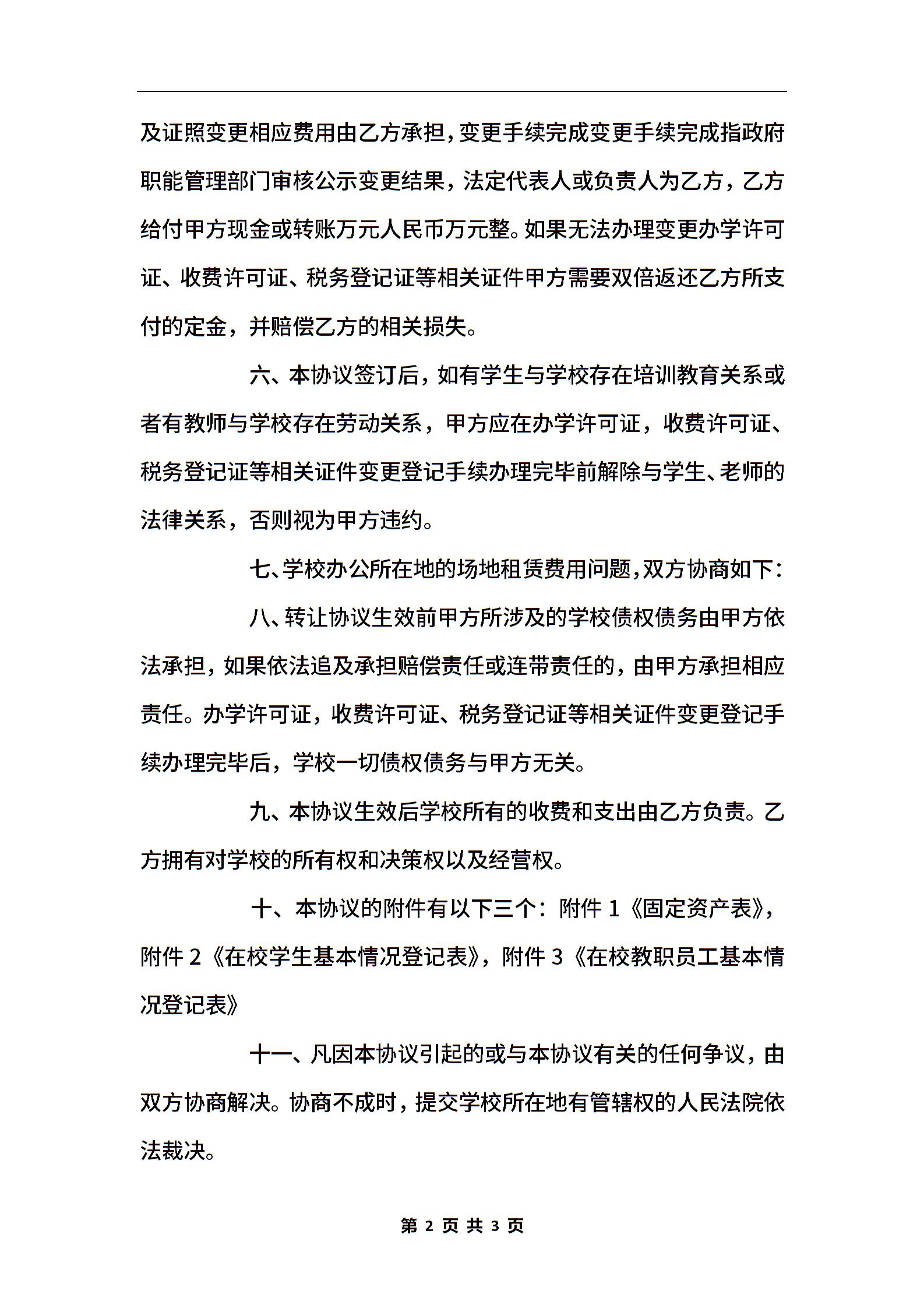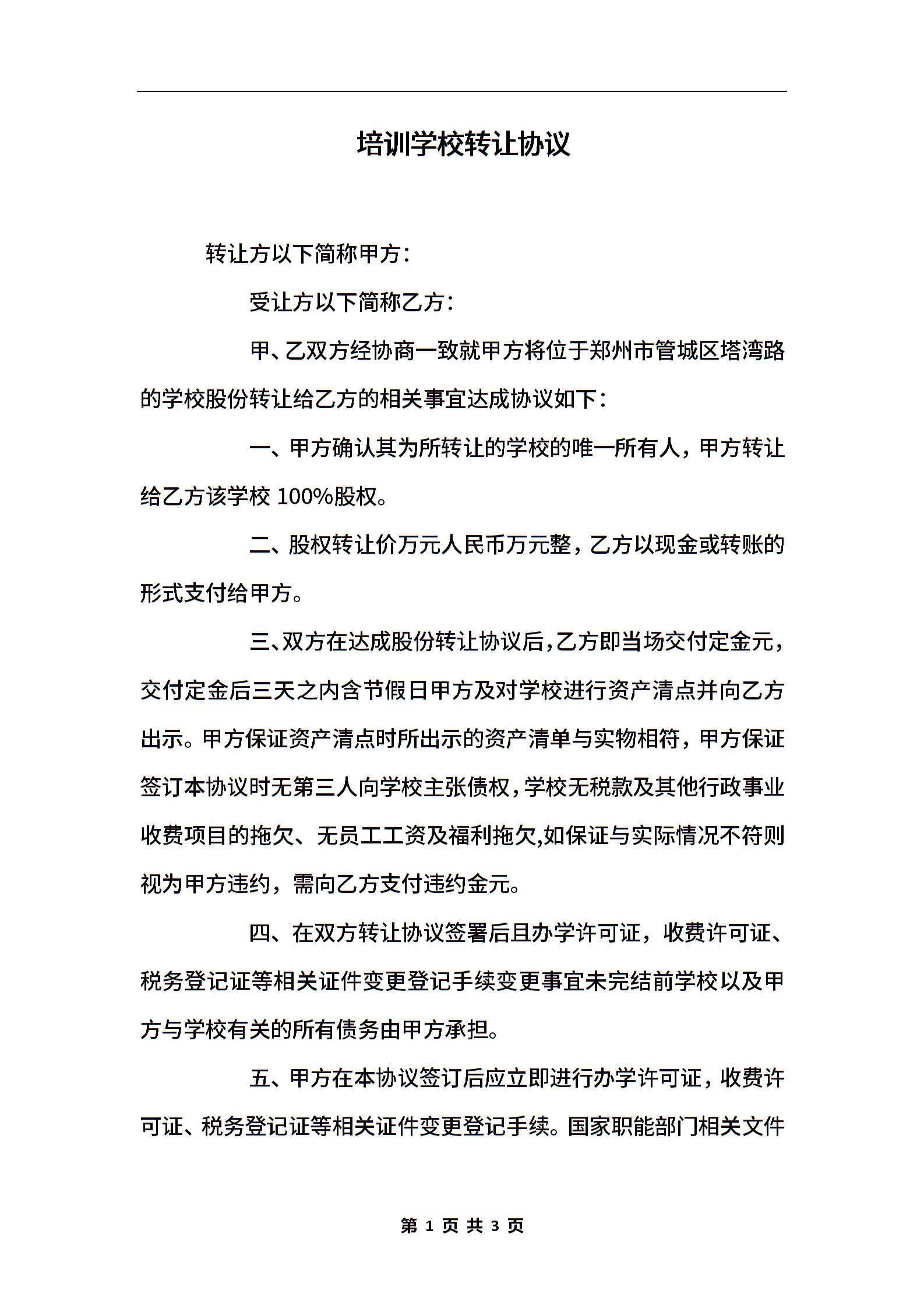 培训学校转让协议