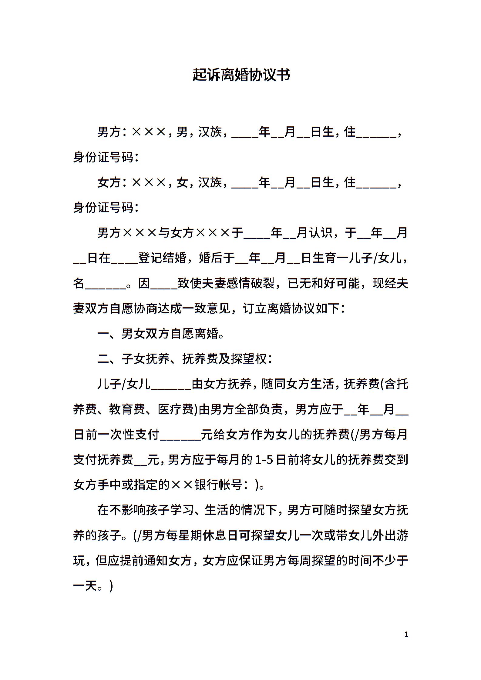 起诉离婚协议书