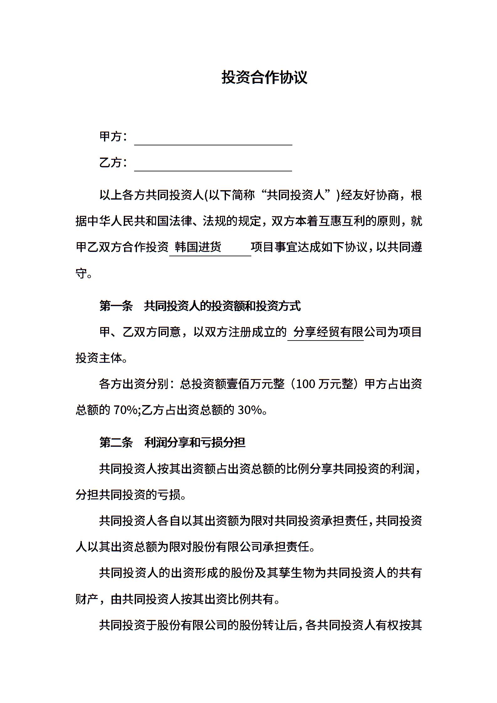 当前位置:量子办公 > 合同模板 > 投资增资 >