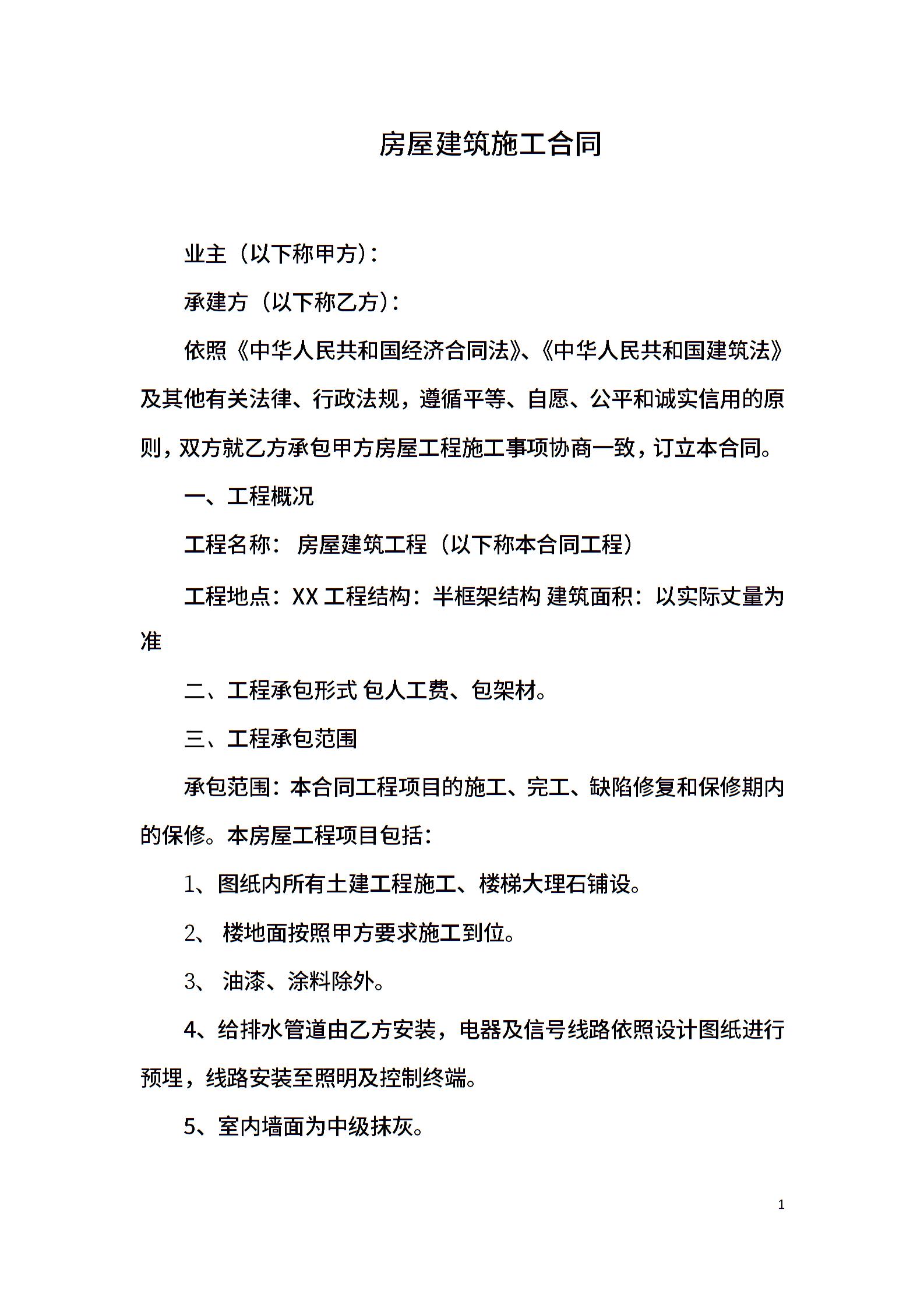 房屋建筑施工合同