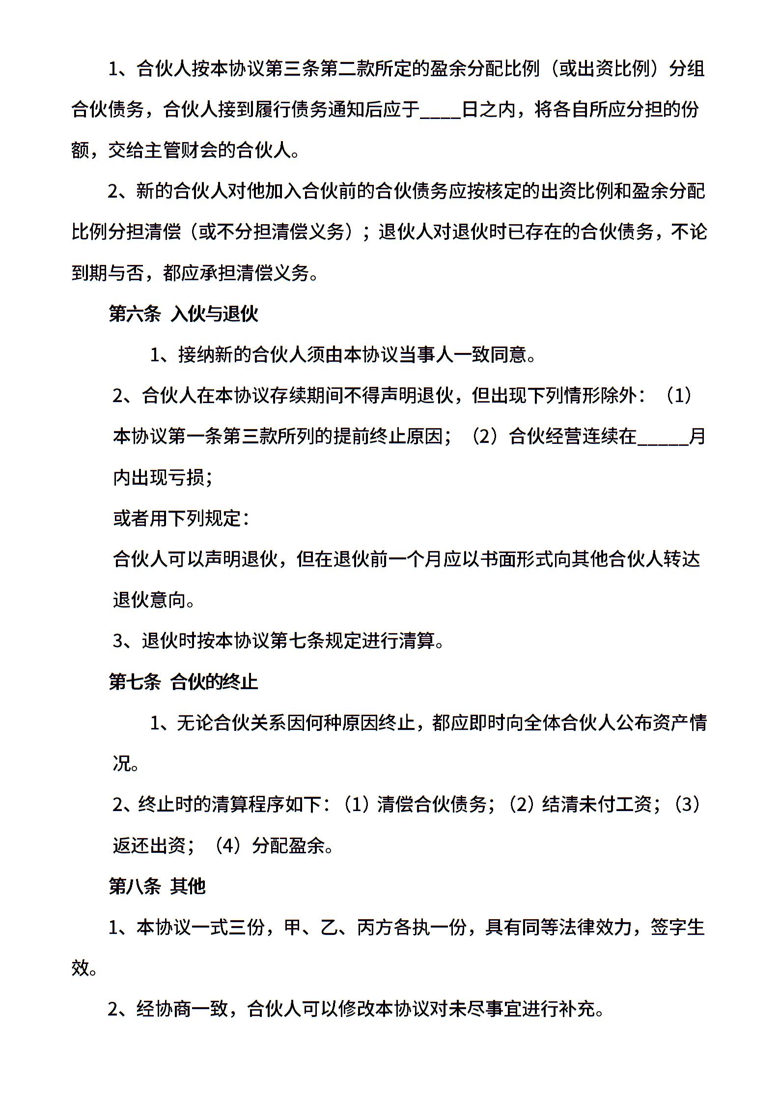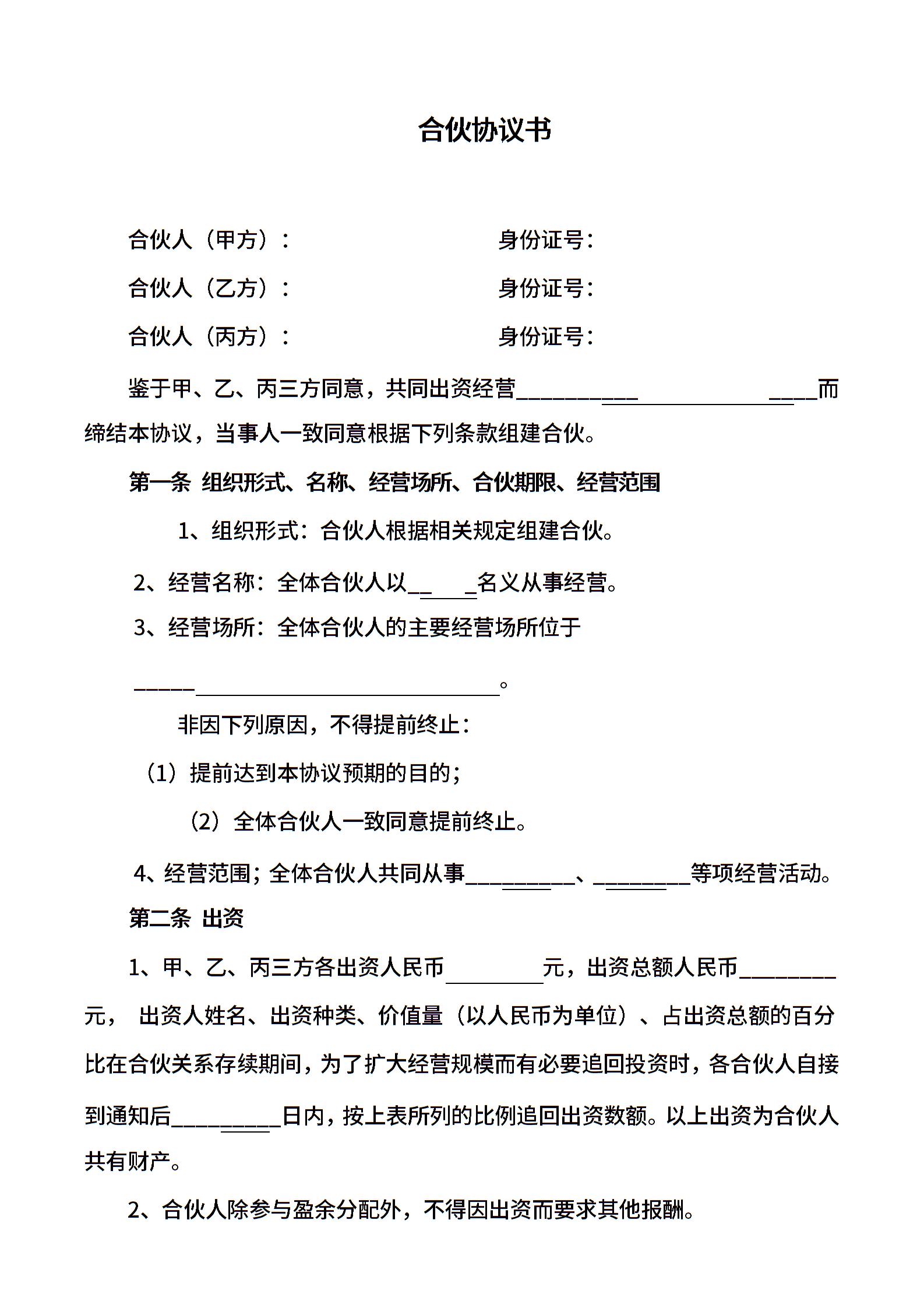 三人合伙协议书