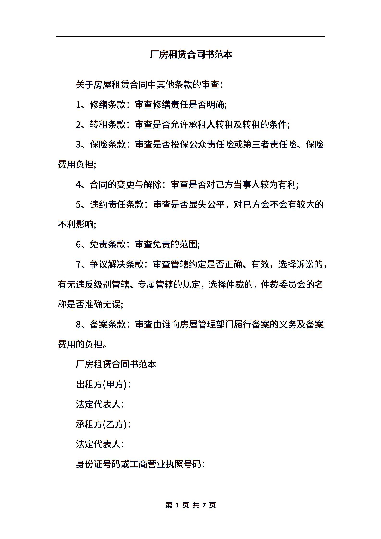 厂房租赁合同书范本.docx