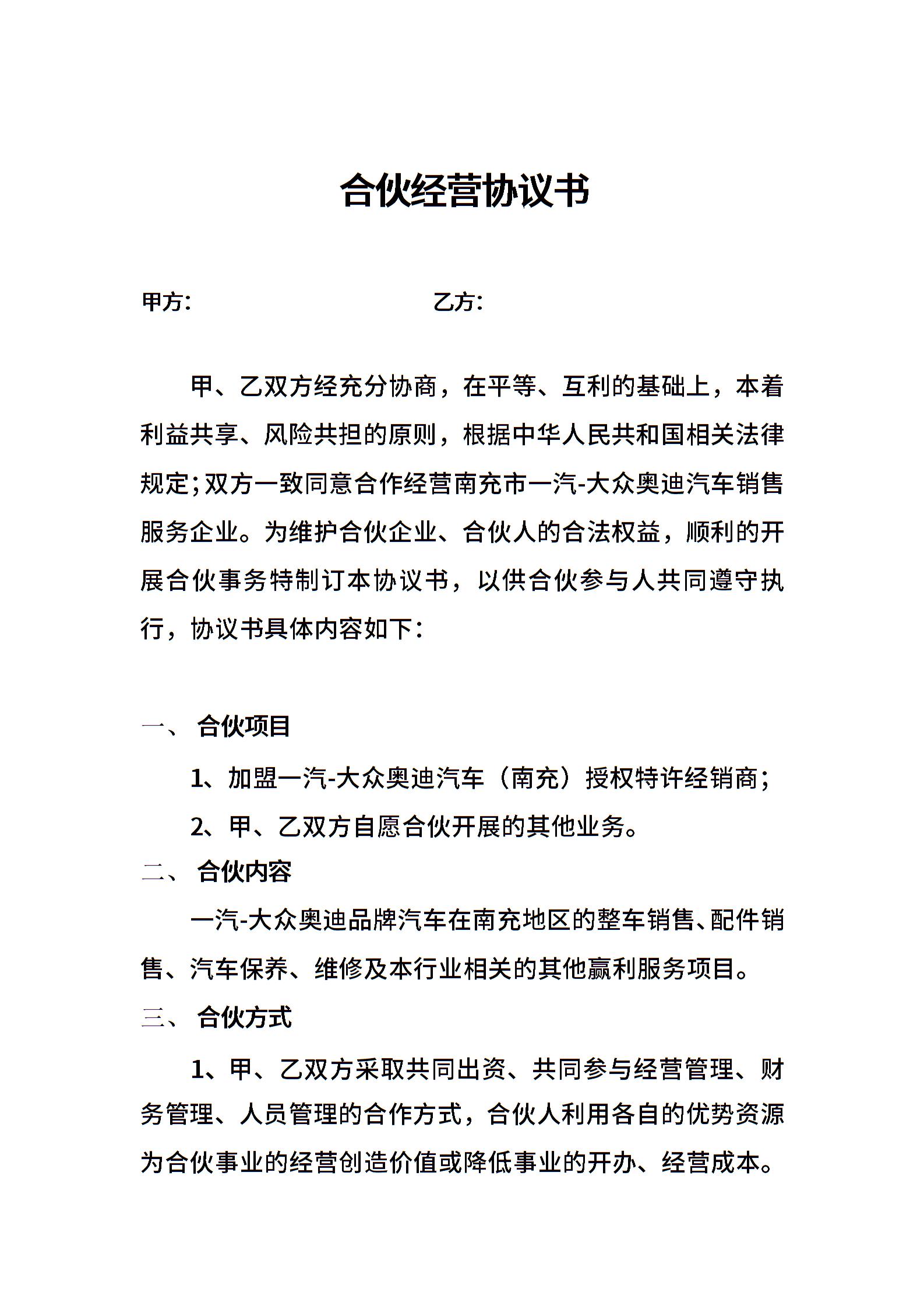 当前位置:量子办公 > 合同模板 > 合作合同 >