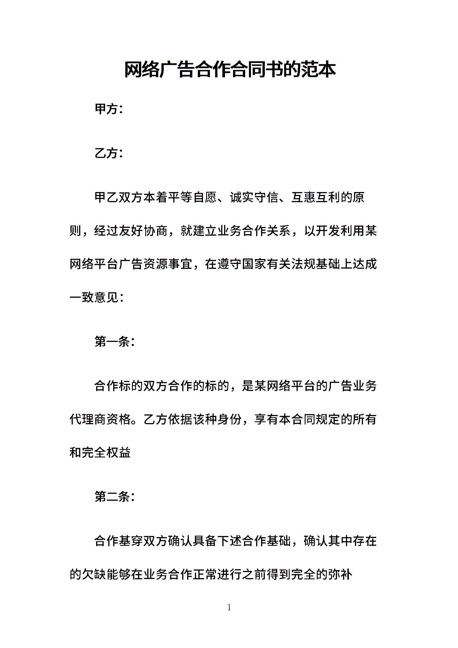 网络广告合作合同协议书的.doc