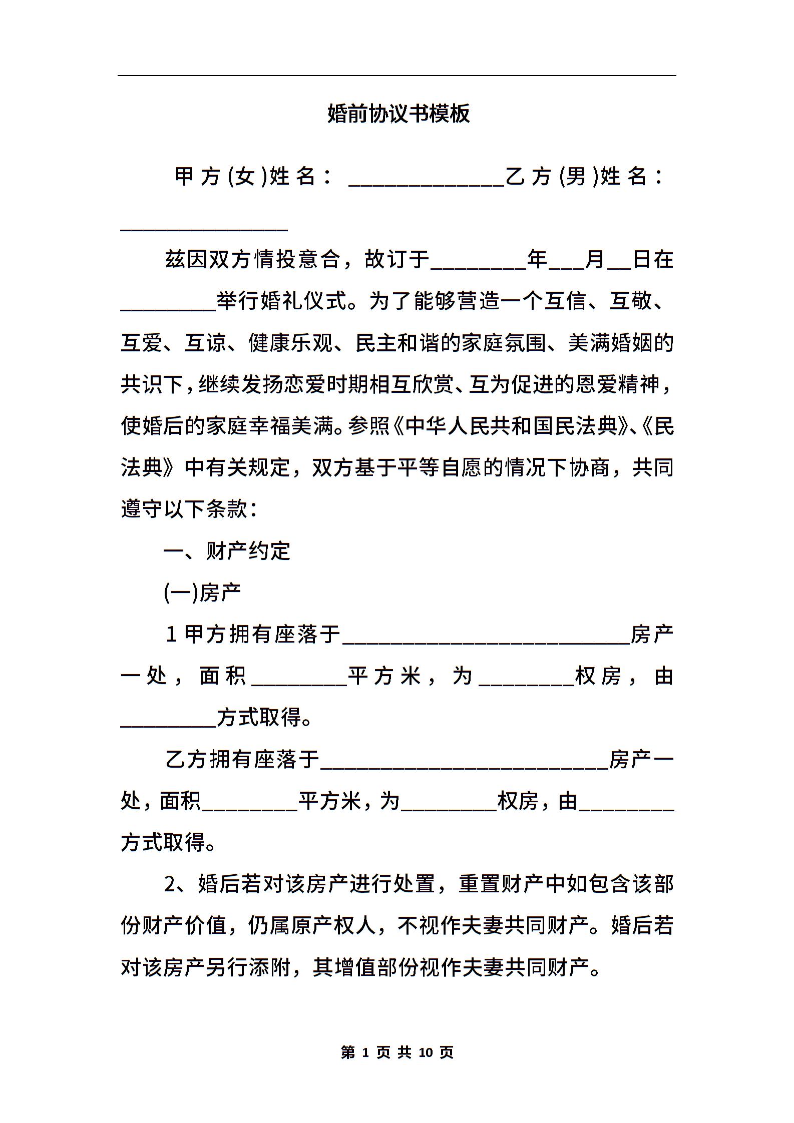 婚前协议书模板.docx