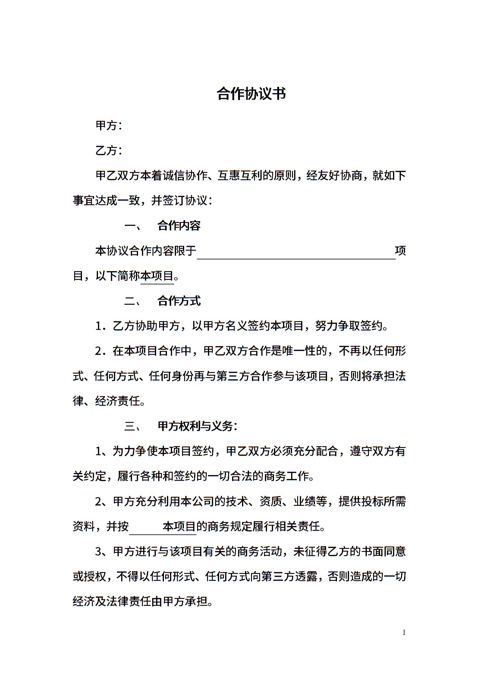 当前位置:量子办公 > 合同模板 > 合作合同 >