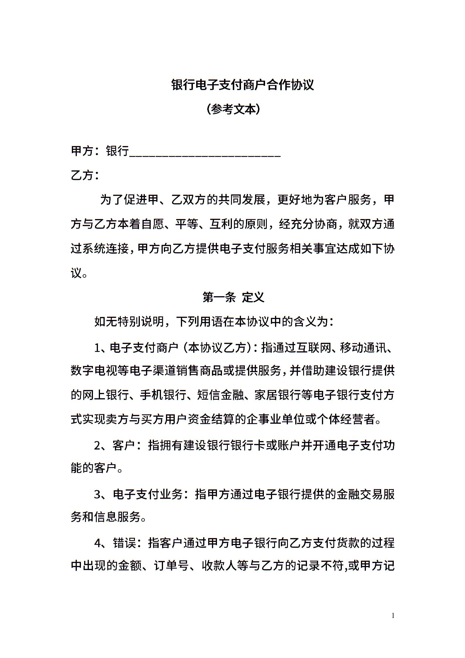银行电子支付商户合作协议