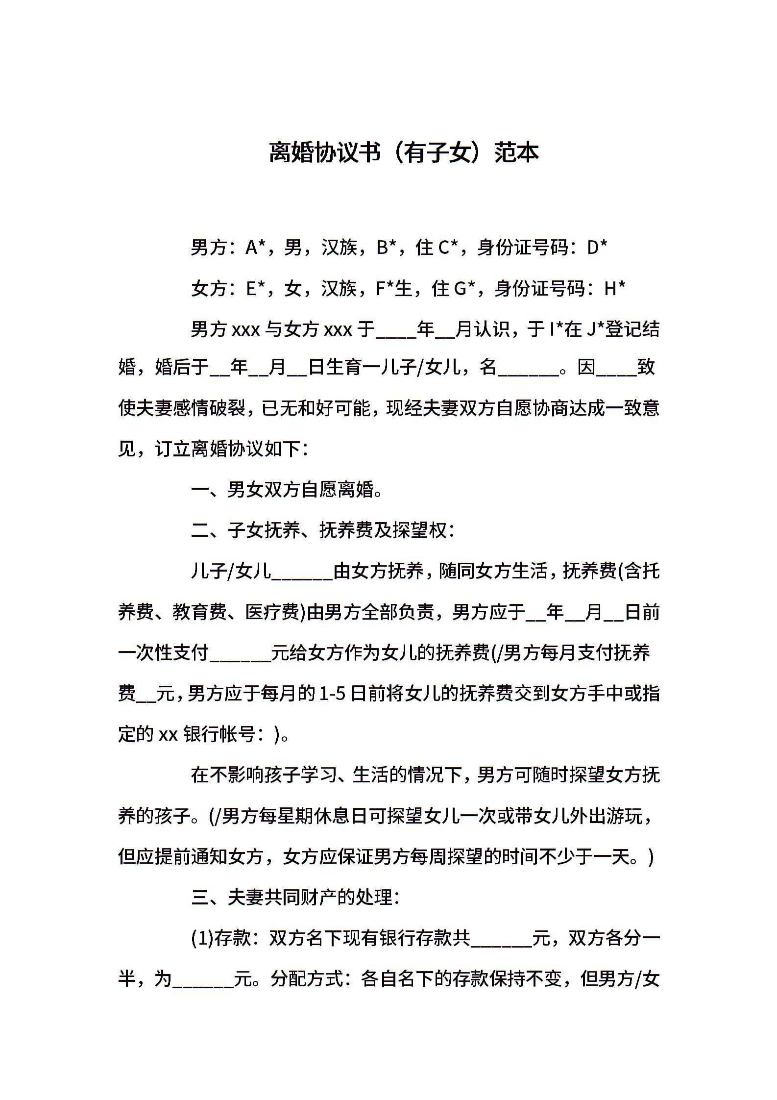 离婚协议书(有子女)范本4篇