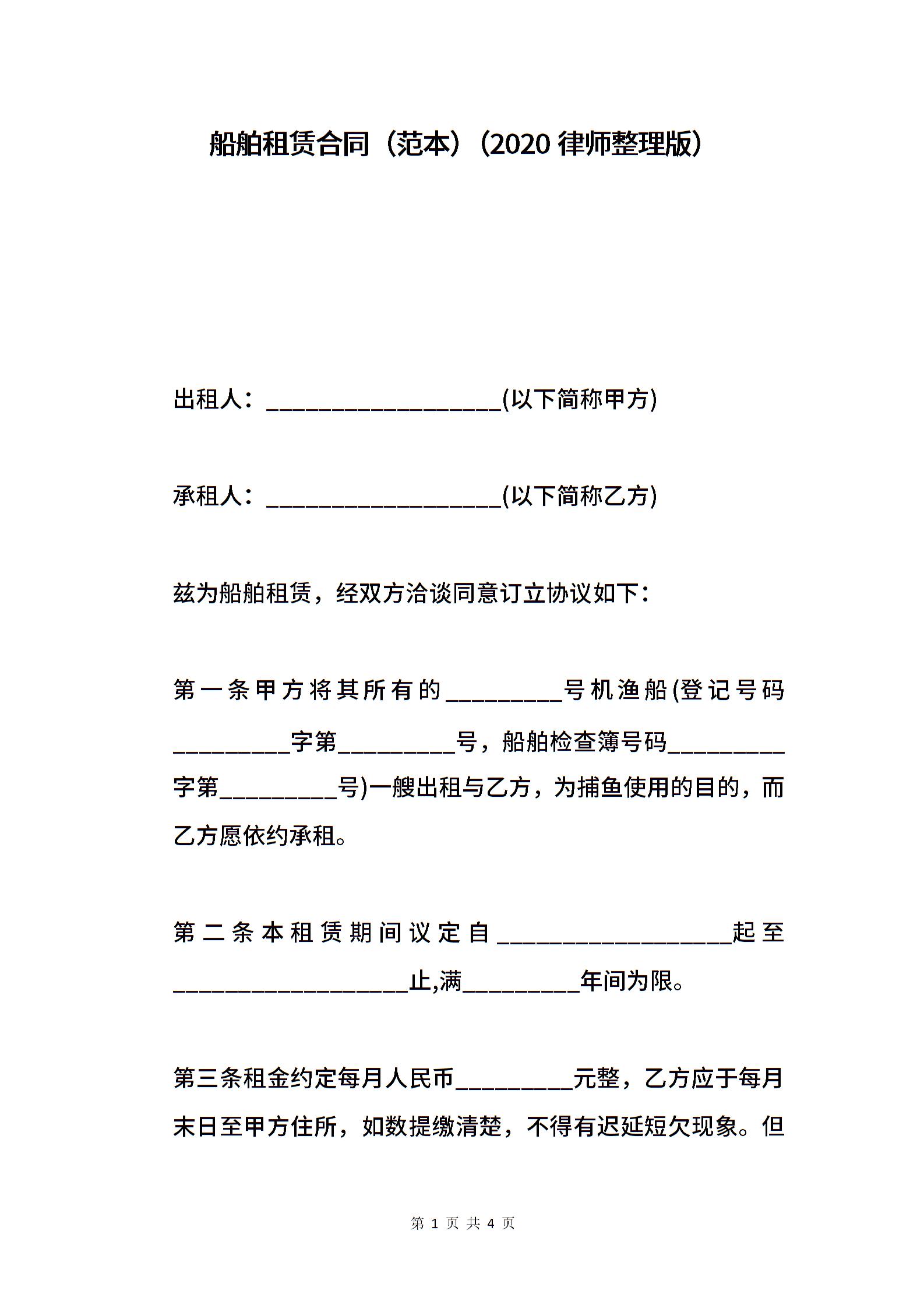 船舶租赁合同(范本)(2020律师整理版).doc