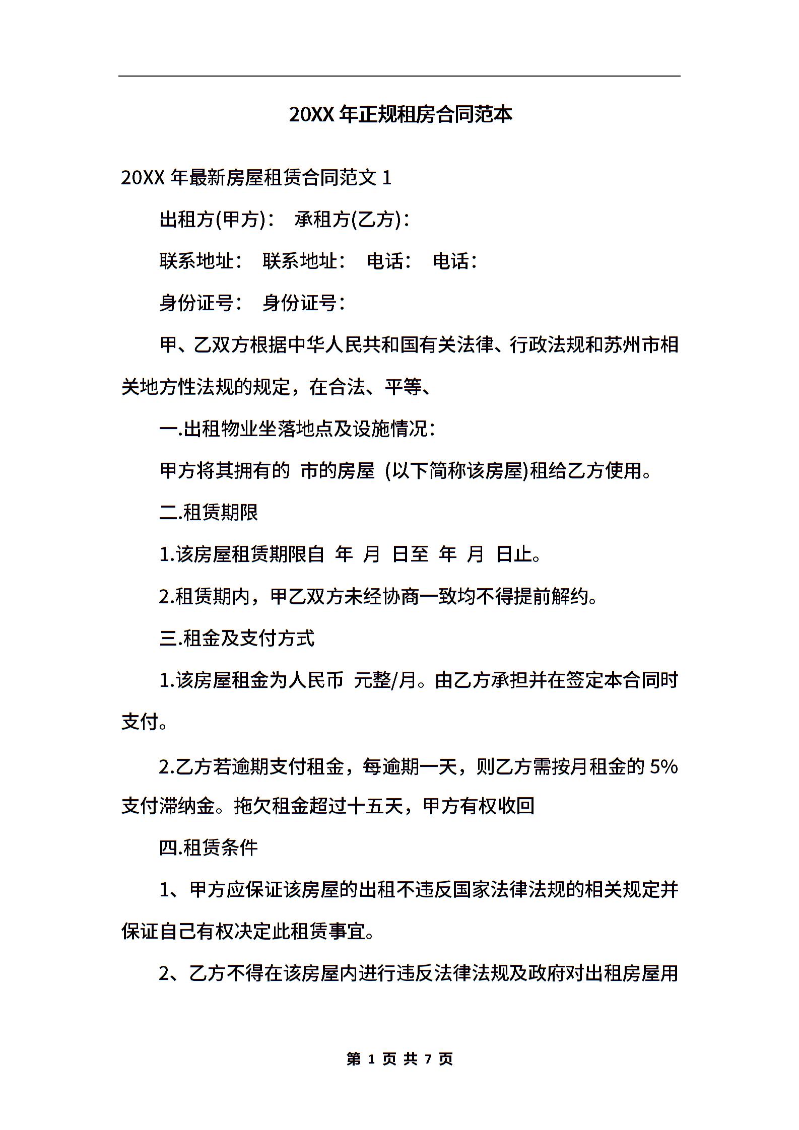 2020正规租房合同范本.docx