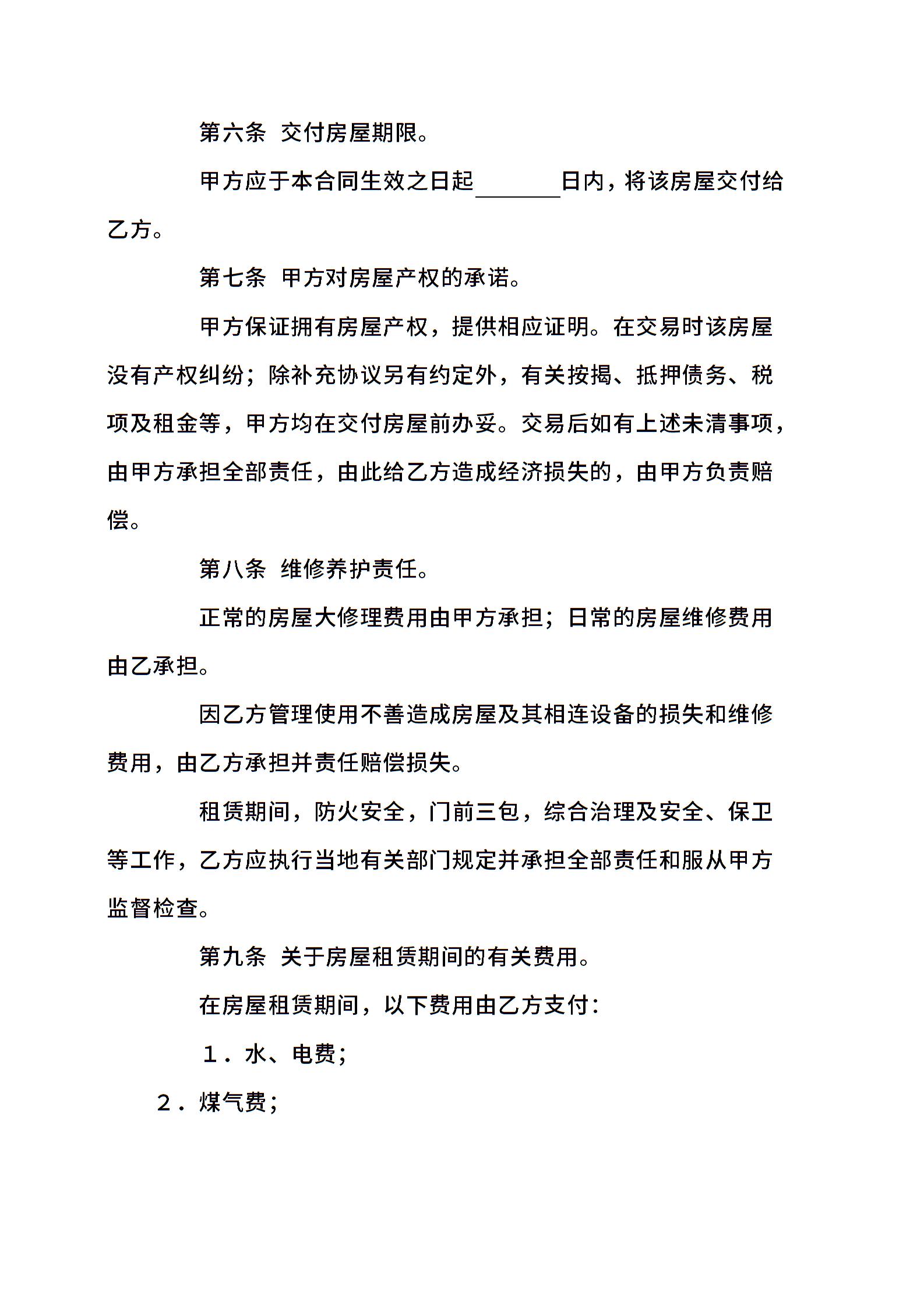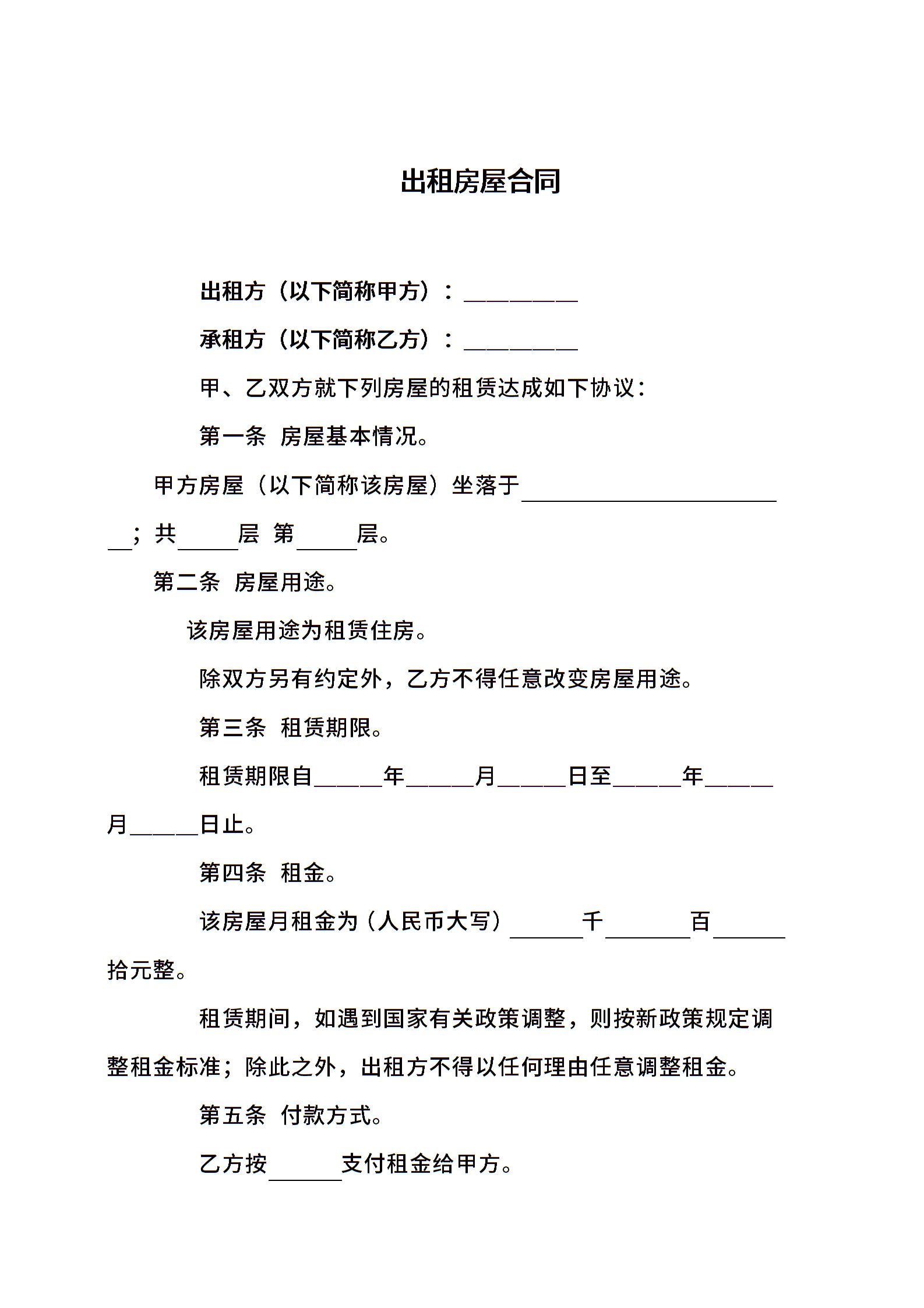 出租房屋合同