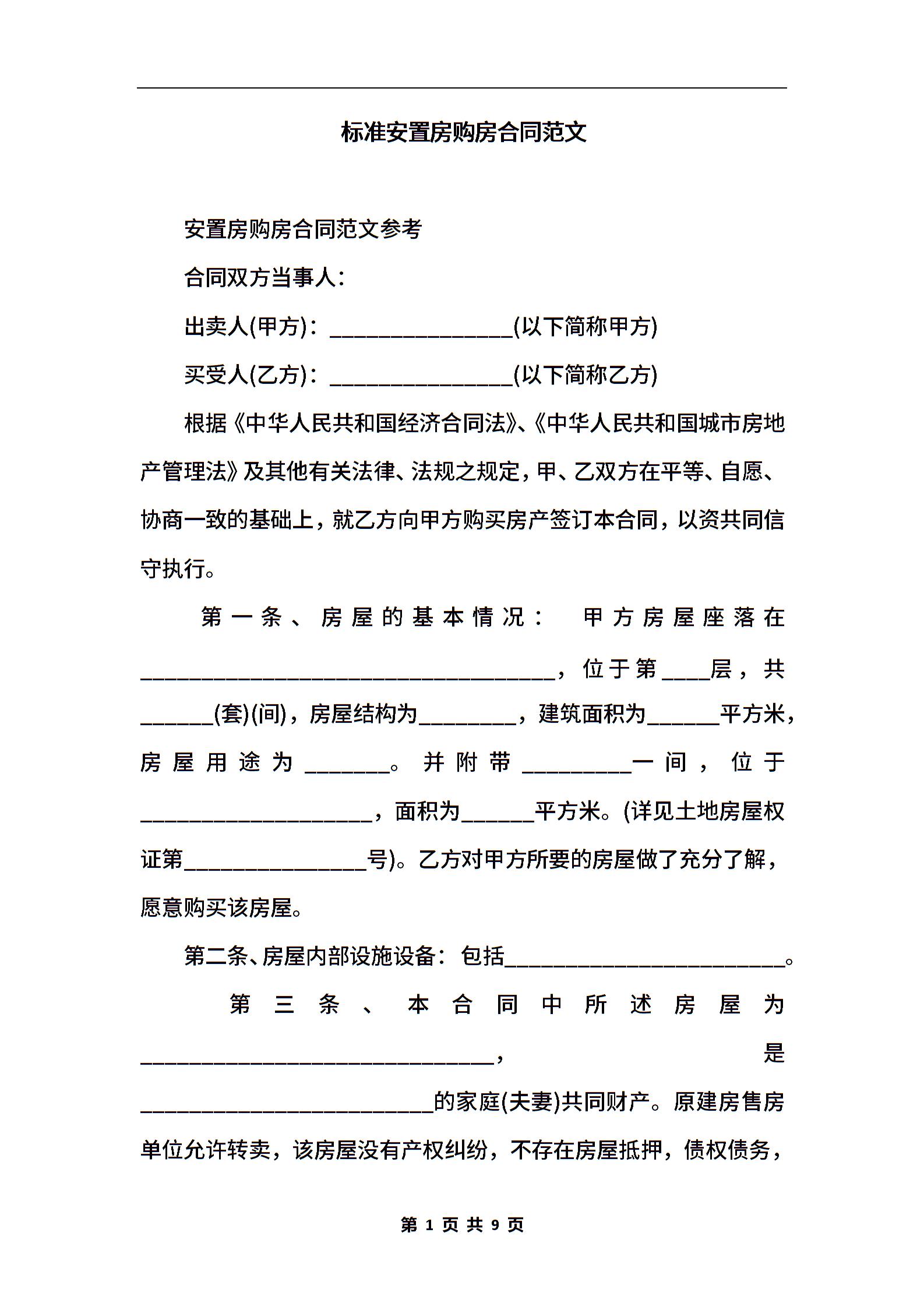 标准安置房购房合同范文.docx