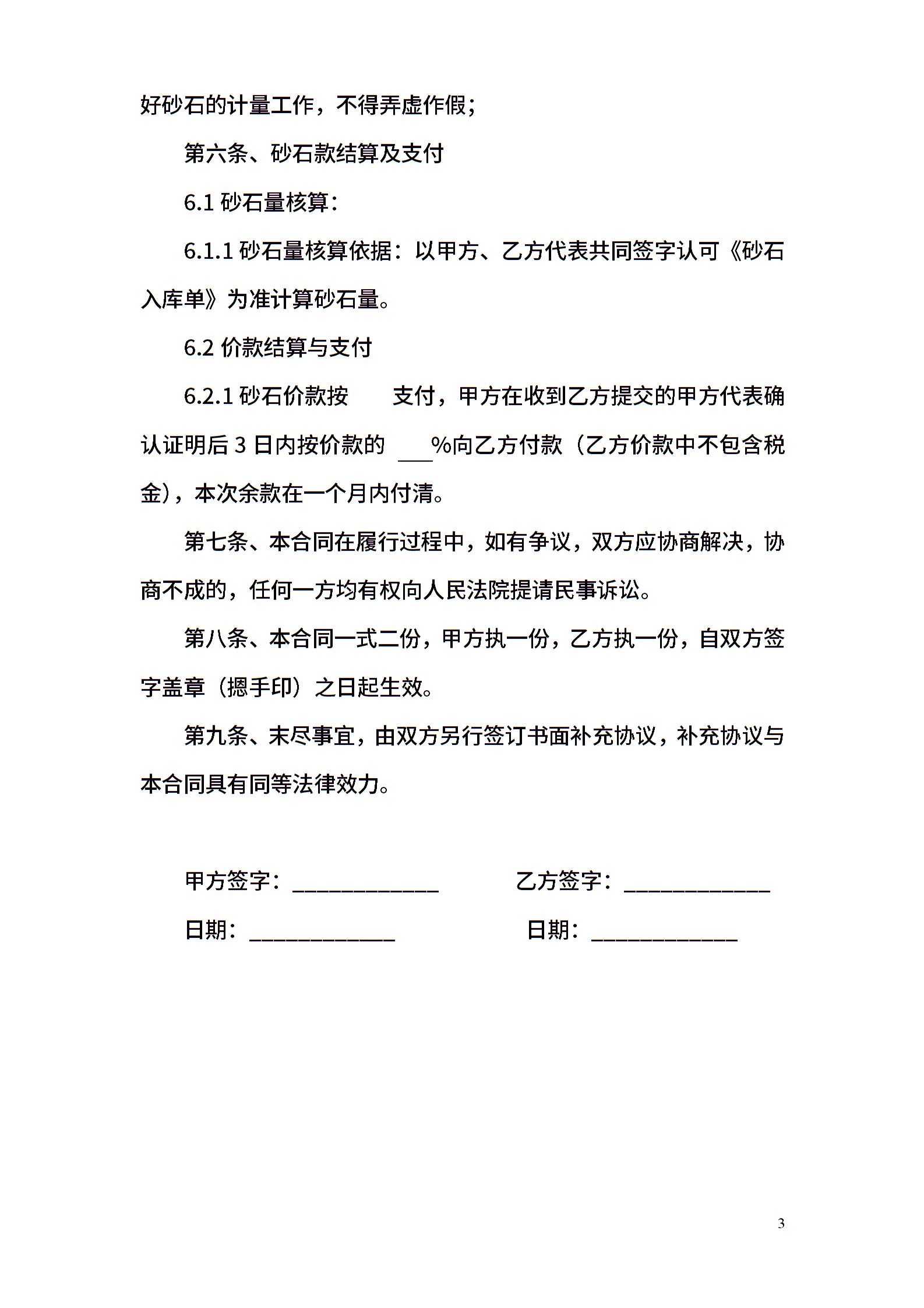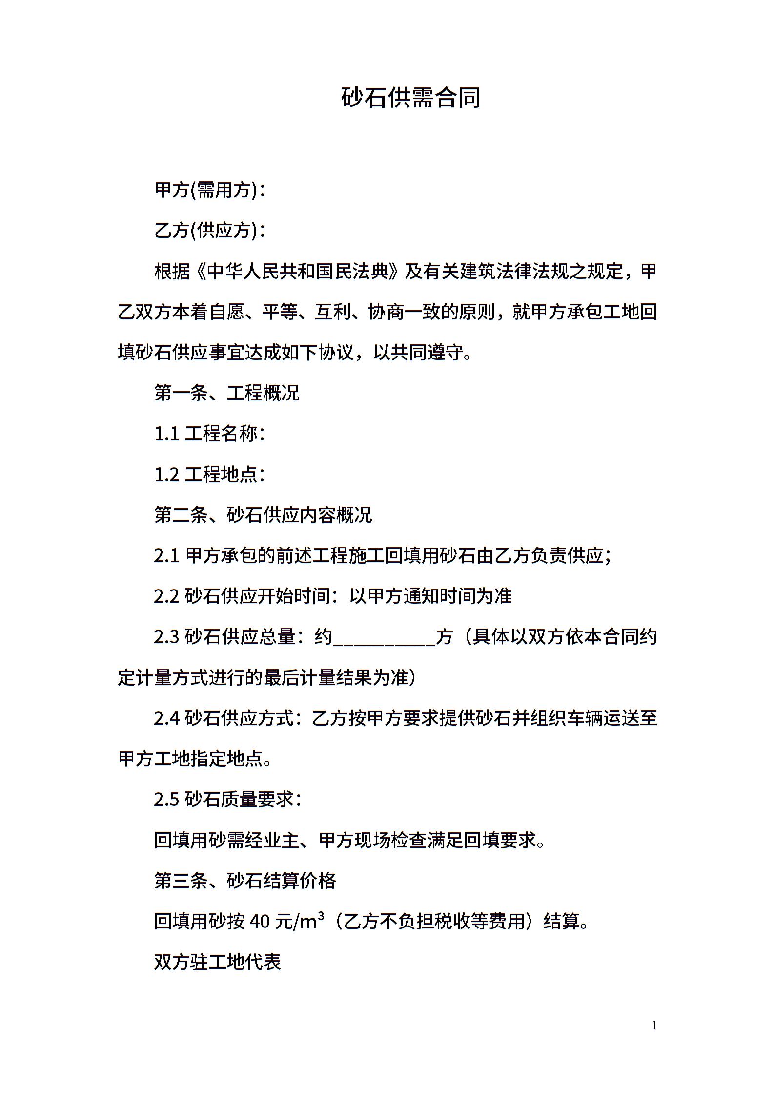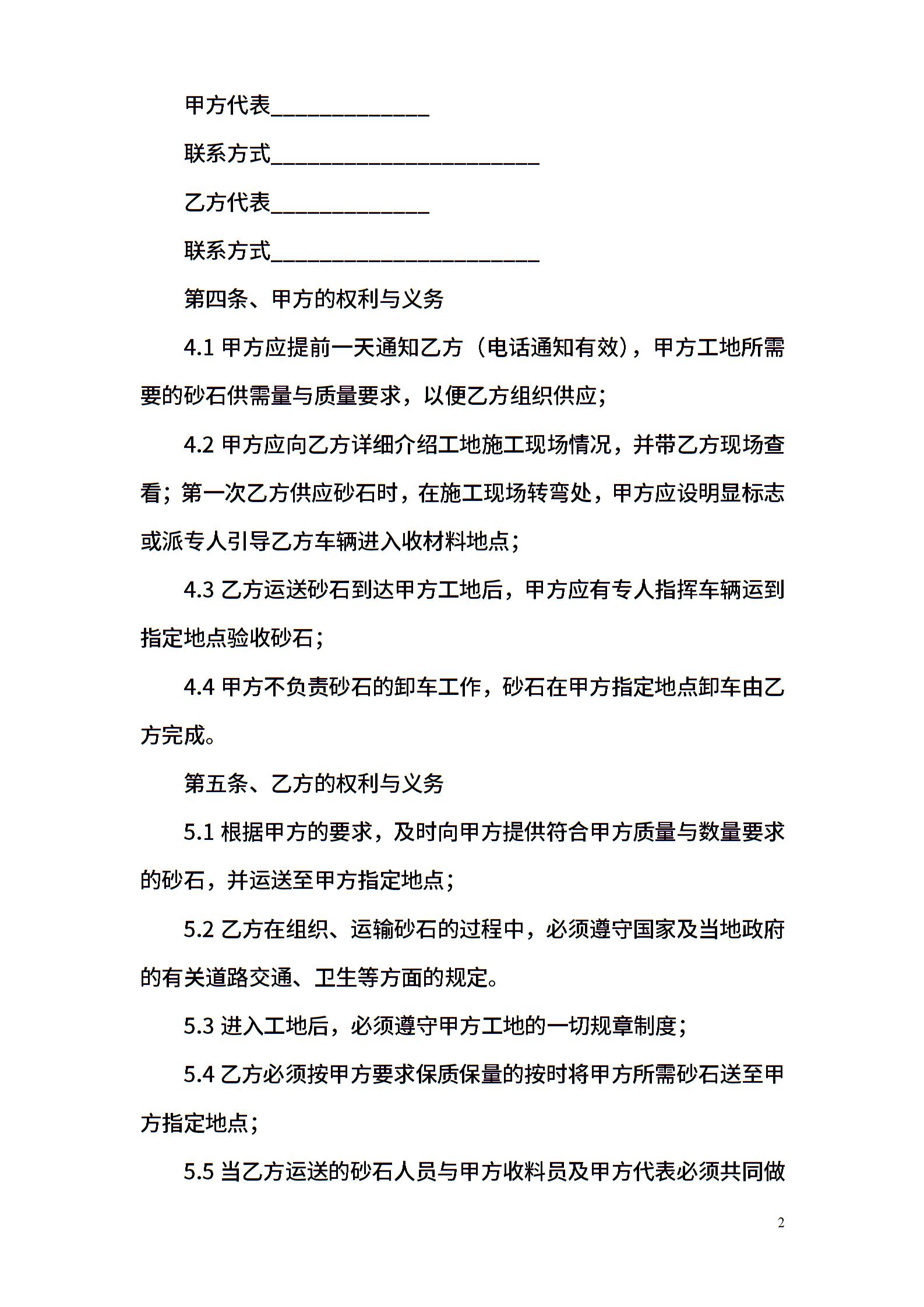 建筑工地砂石供应合同