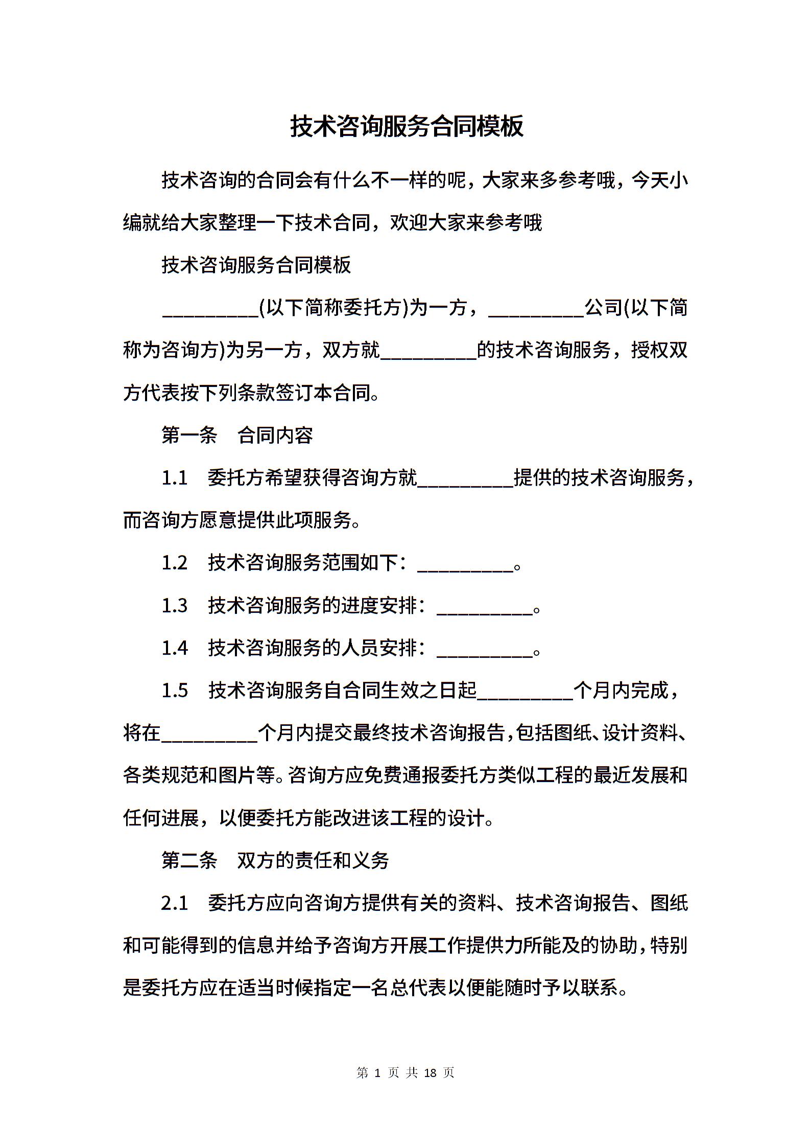 技术咨询服务合同模板.docx