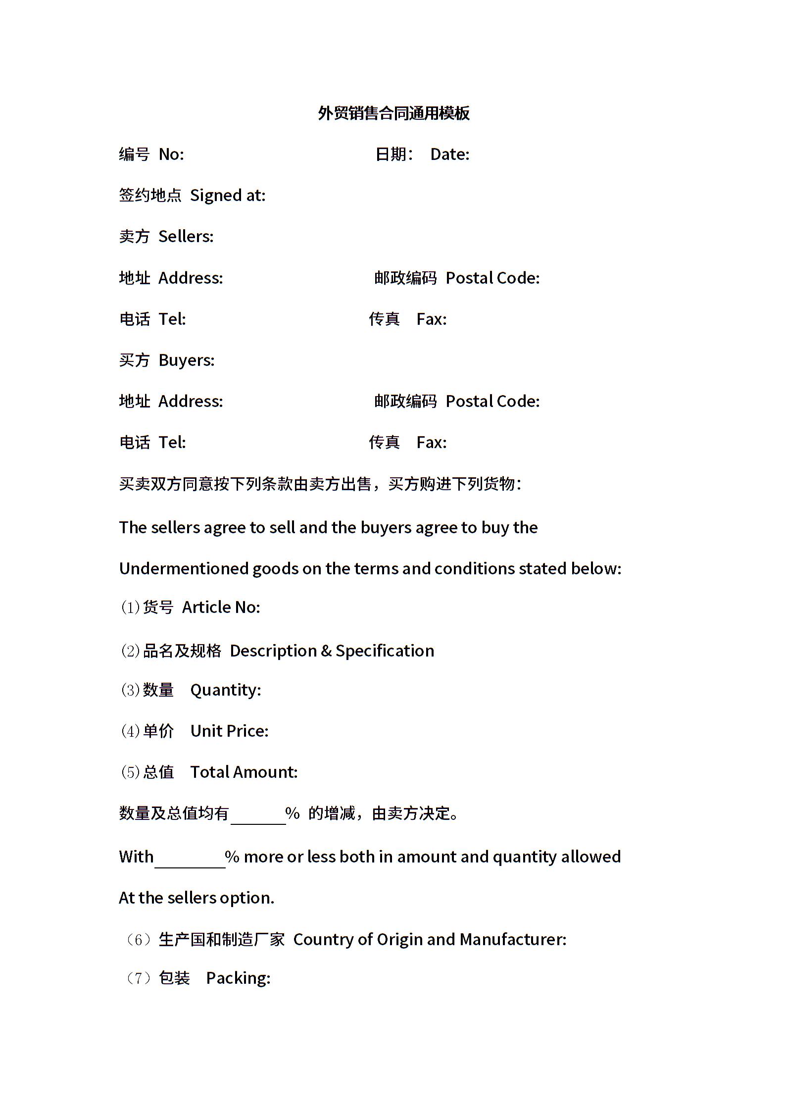当前位置:量子办公 > 合同模板 > 销售合同 >