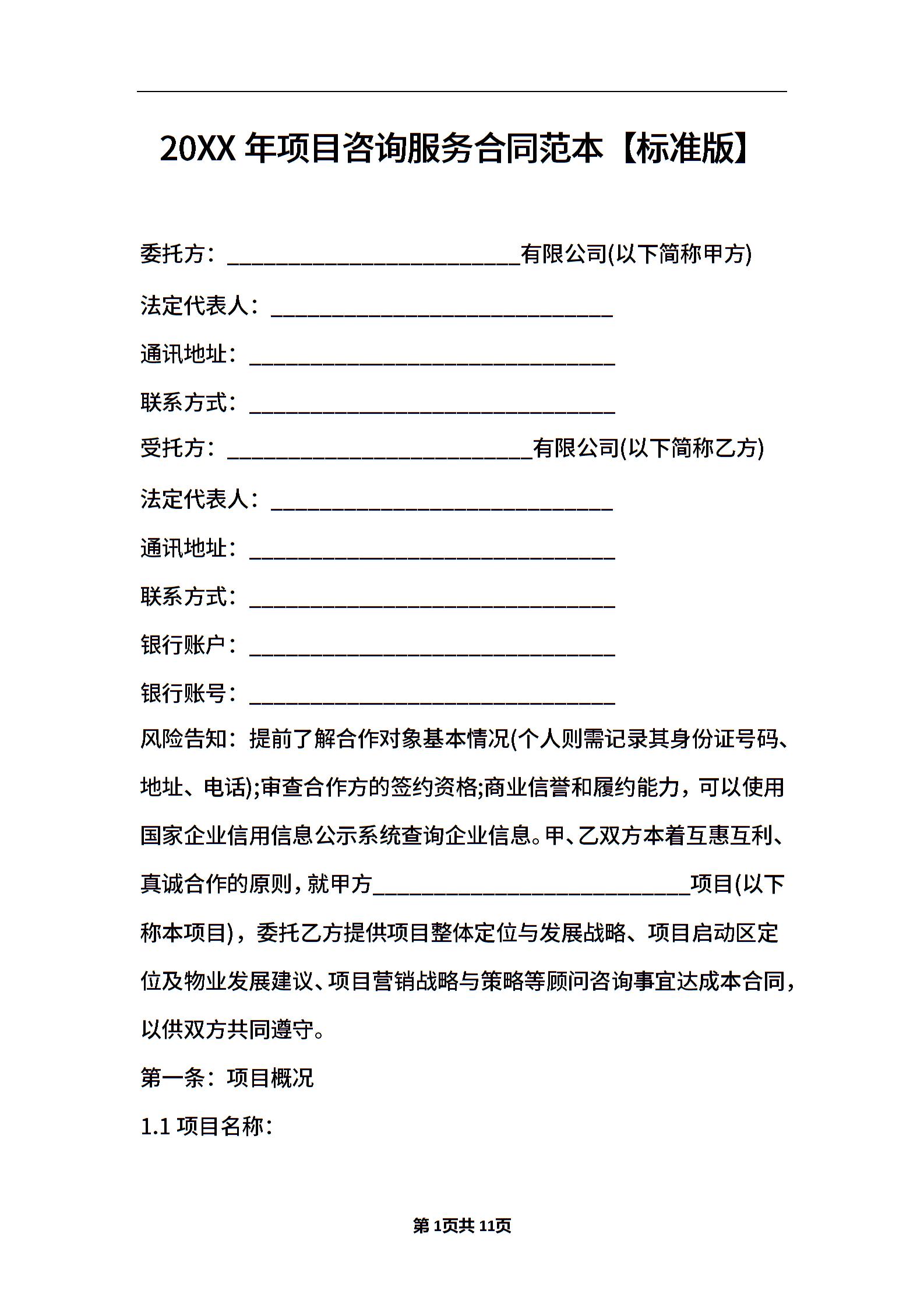 2021年项目咨询服务合同范本【标准版】